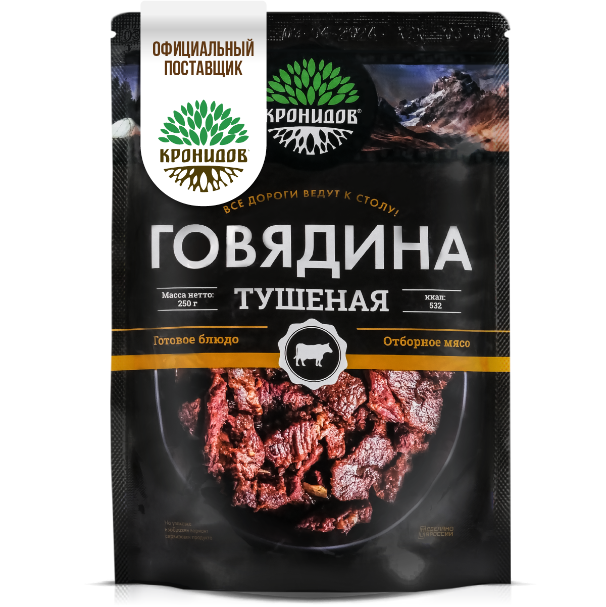 Говядина тушеная высший сорт Готовое блюдо в реторт-пакете ТМ Кронидов. Консерва Набор 2 шт. по 250 г