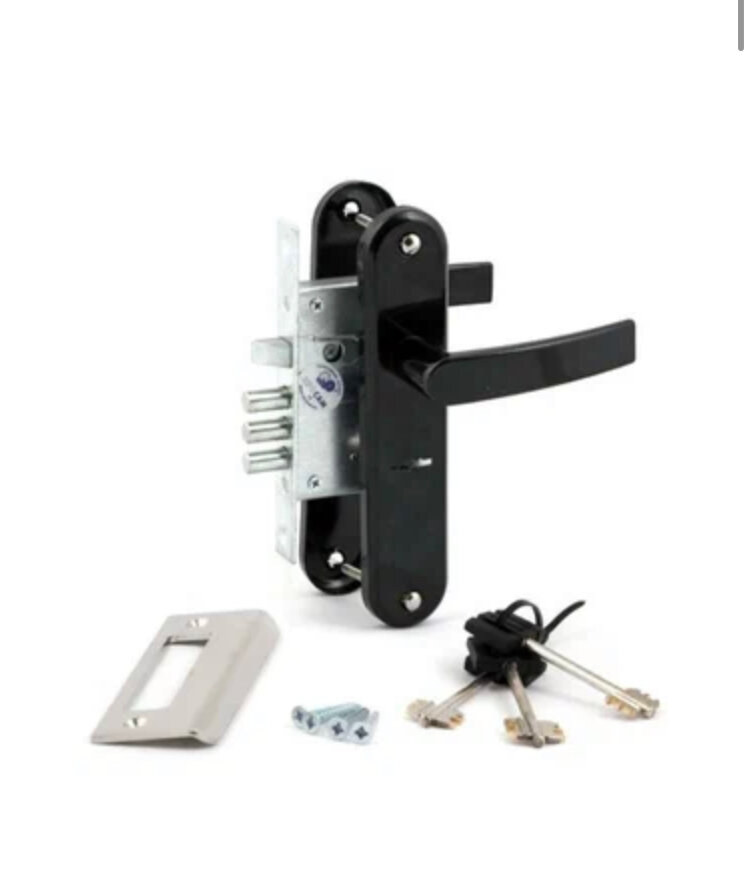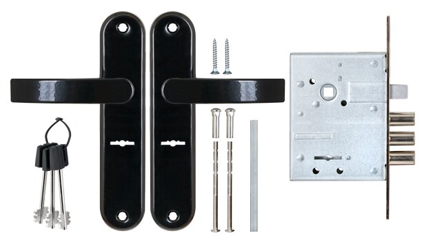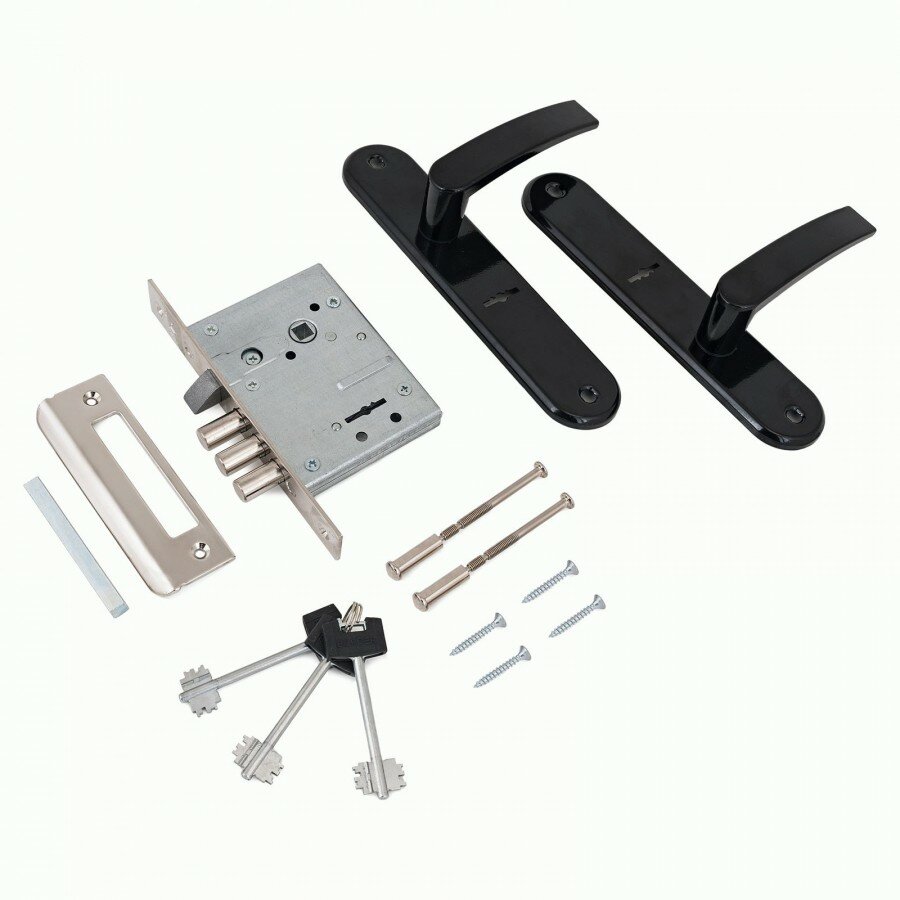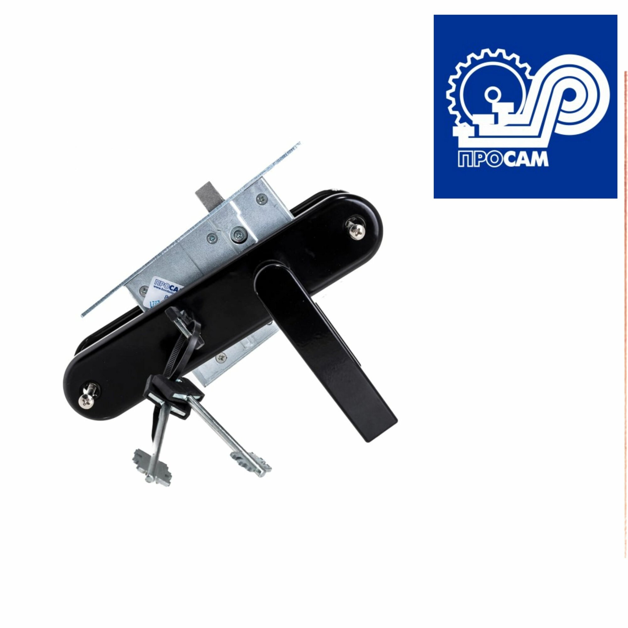 Замок врезной сувальдный с защёлкой в комплекте с ручкой Сам ЗВ9-6/13 (черный глянец), 3 кл. /77305/