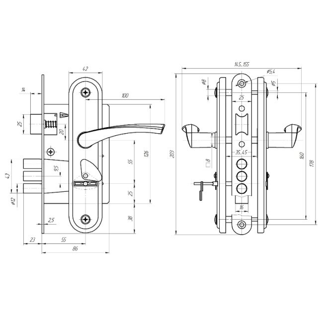 Замок врезной сувальдный с защёлкой в комплекте с ручкой Зенит (замки) зенит ЗВ9-4-2 (черный), 3кл.