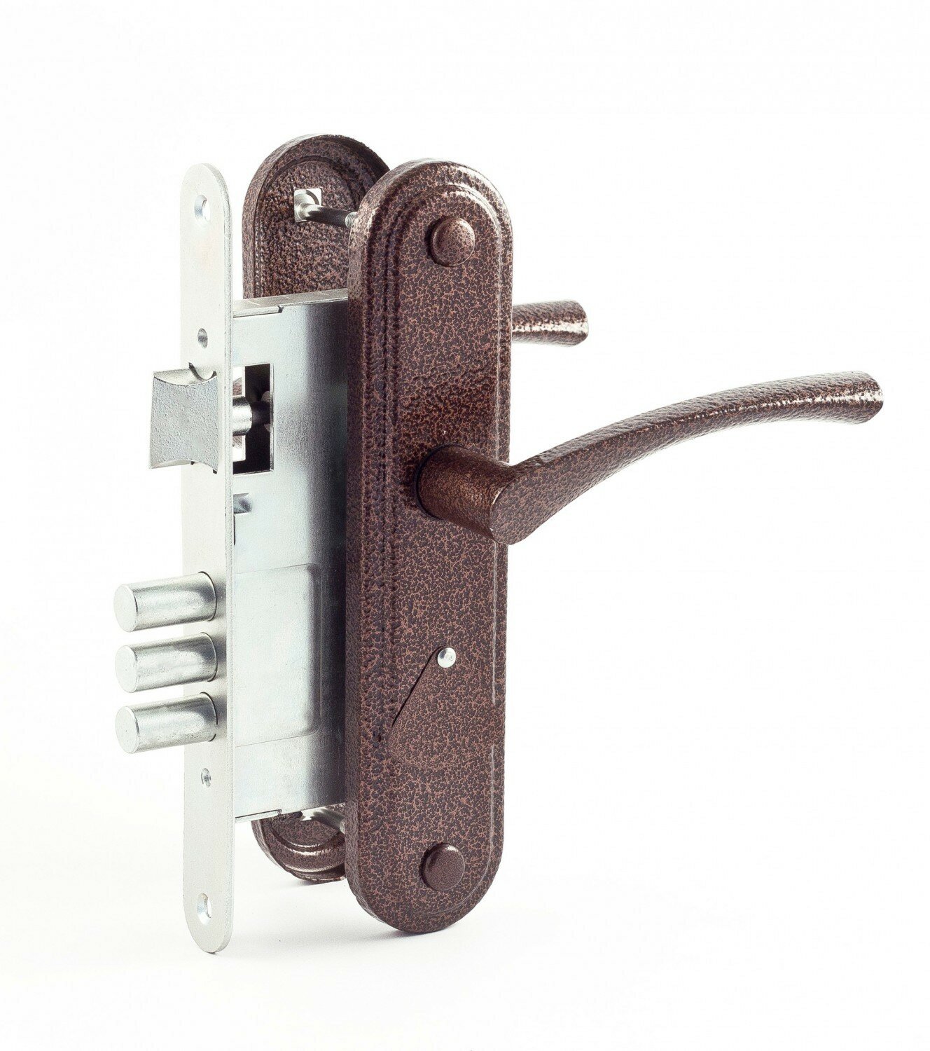 Замок врезной Zenit (Зенит) сувальдный с защёлкой в комплекте с ручкой ЗВ9-4-2 (медь)