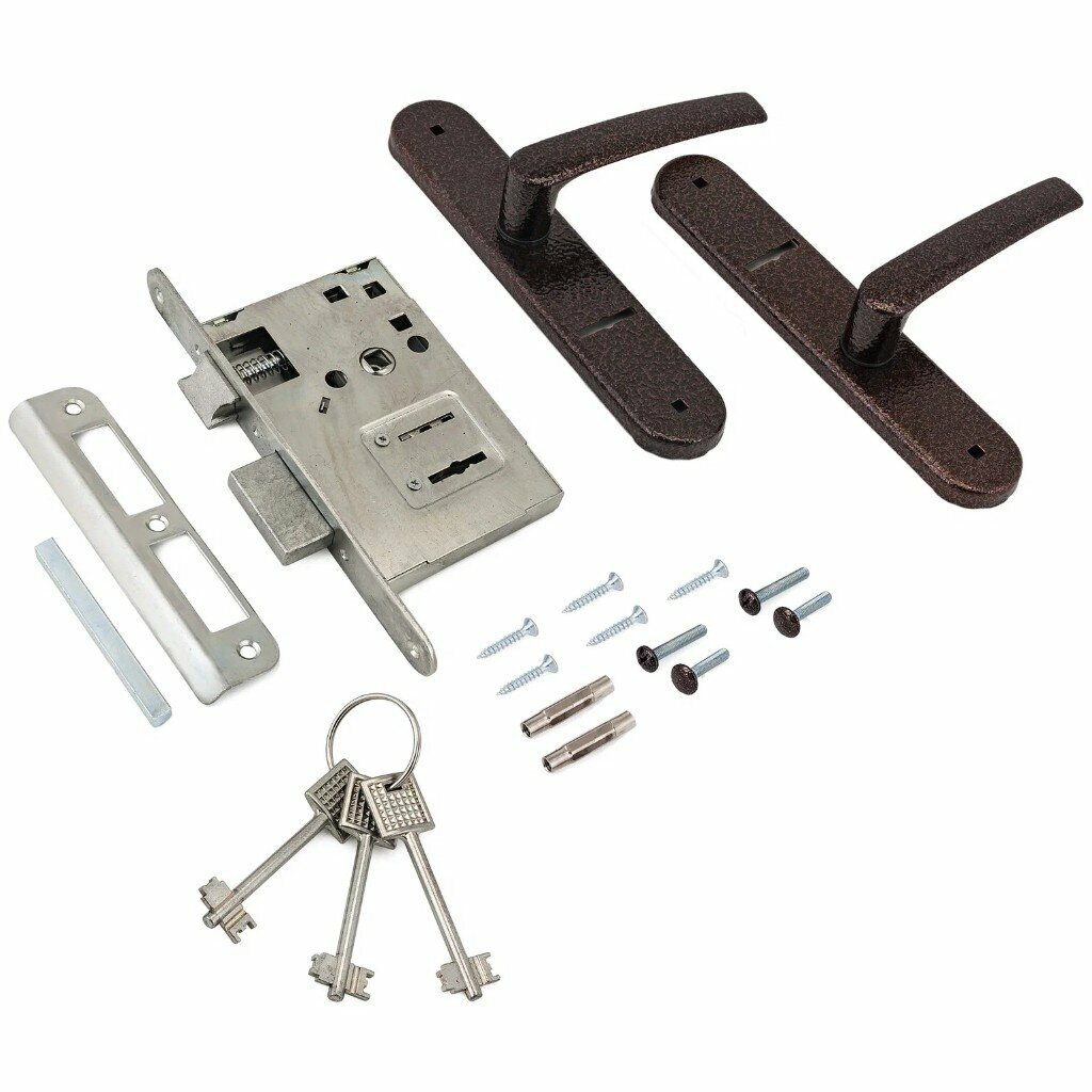 Врезной замок КНР "Птимаш", сталь, цвет Медь, с ручкой, для деревянной двери, 4 ключа
