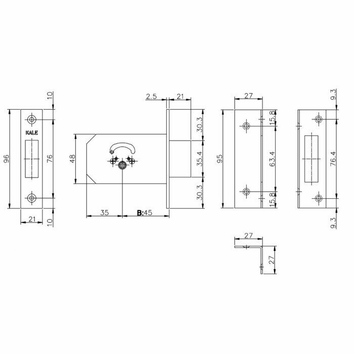 Замок Kale kilit (Кале килит) врезной сувальдный с защёлкой 442/L , 4 кл. (кл. 60 мм)