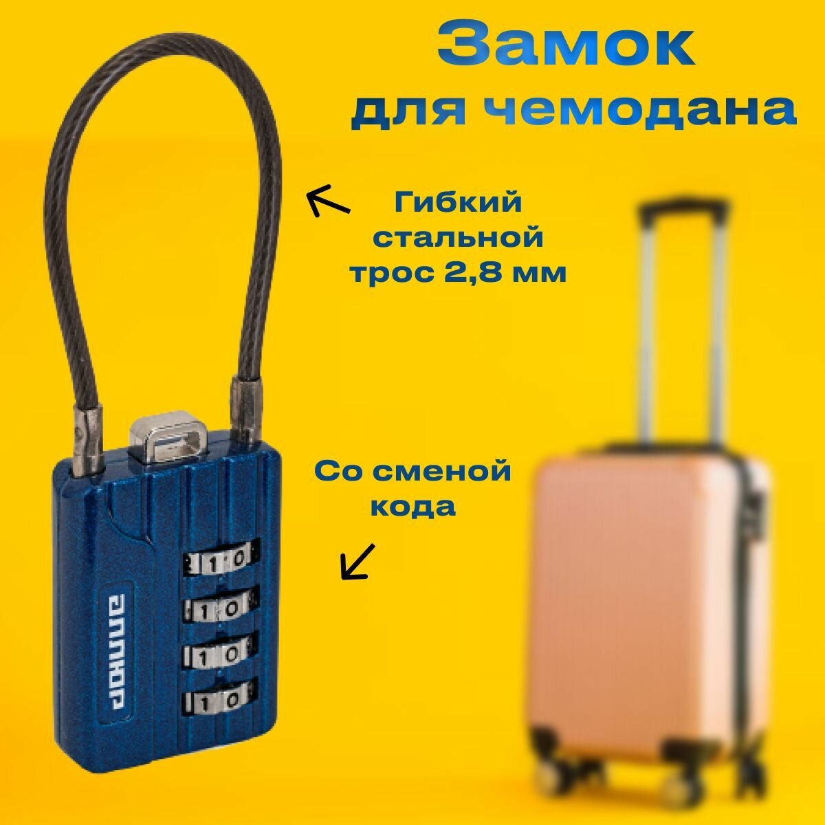 Купить Замок навесной аллюр ВС1КТ-30/3 Синий с тросиком кодовый д.3мм для чемоданов