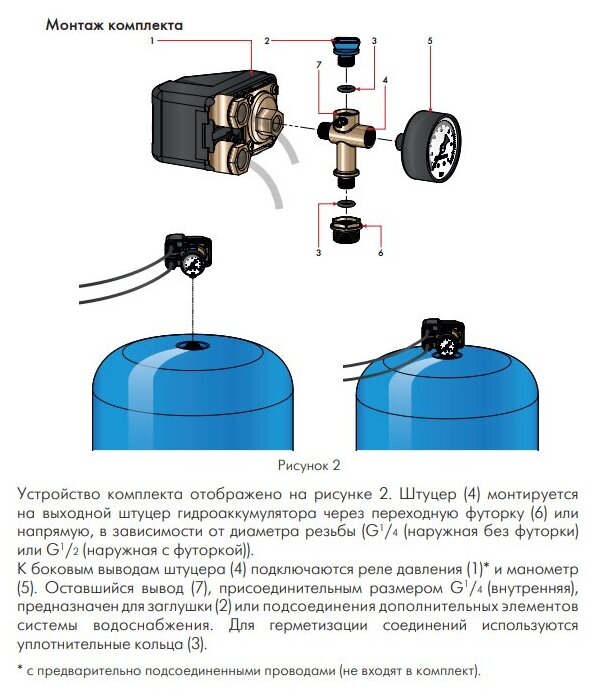 Набор для автоматической работы погружных и поверхностных насосов (5-ти выводной штуцер + манометр + реле давления)