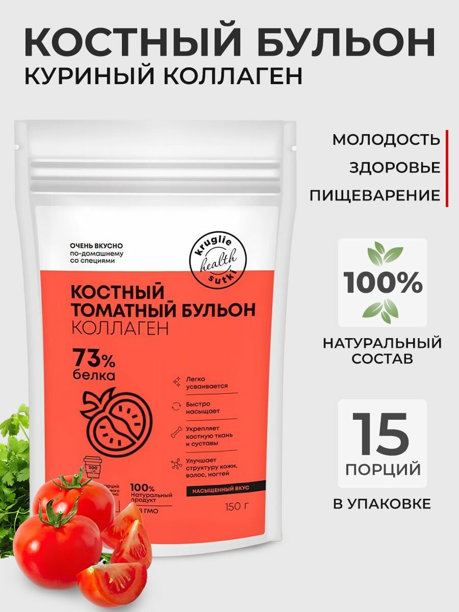 Костный бульон "Круглые сутки", с коллагеном, томатный, порошок, 15 порций