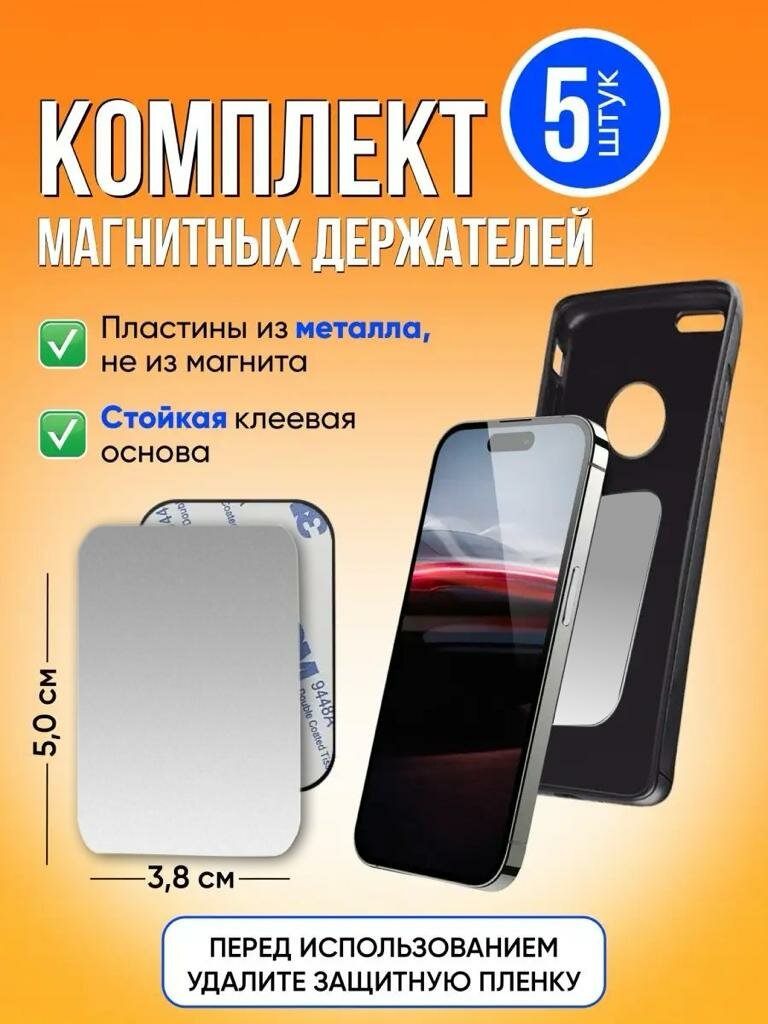 Пластина для магнитного держателя комплект 5 шт., магнитная металлическая пластина для держателя телефона, комплект для автодержателя смартфона, пластины - 5шт, 50х38 мм