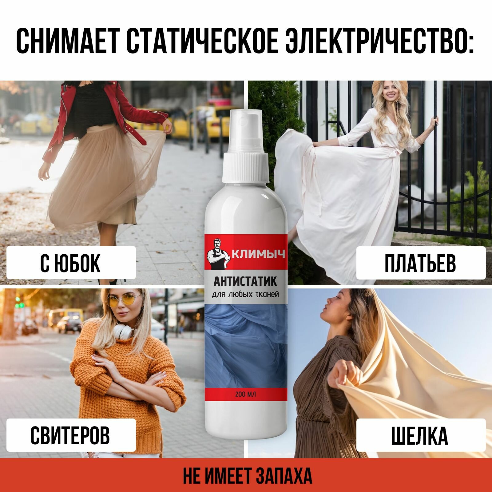 Антистатик климыч, универсальный, без запаха, для всех видов ткани, 400мл