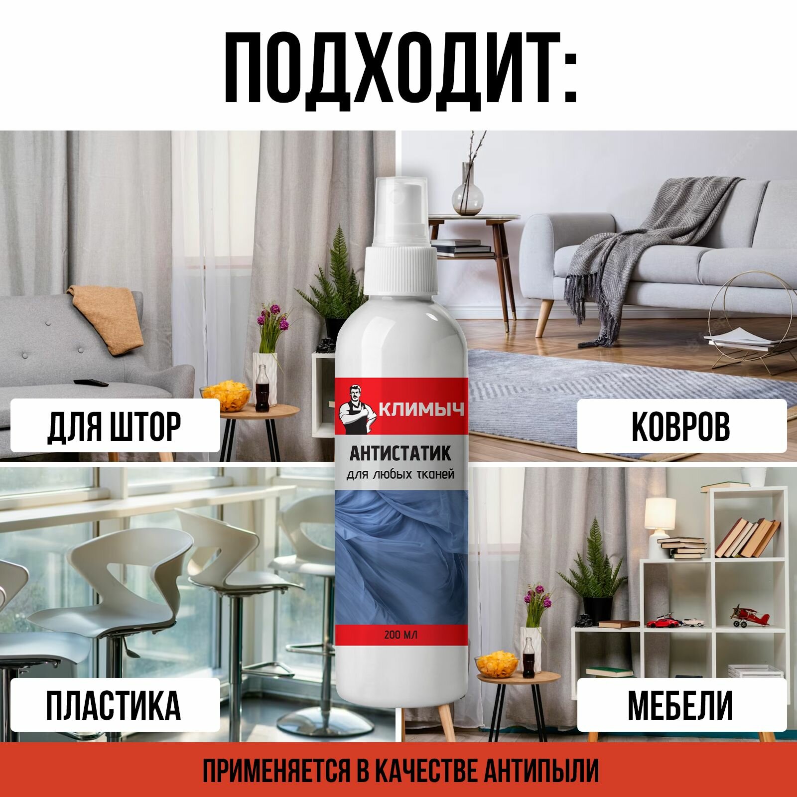 Антистатик климыч, для всех видов ткани, спрей, без запаха, 200мл интересное:
