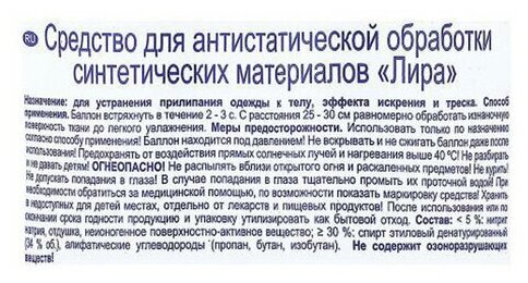 Антистатик Лира для одежды и мебели, защита от пыли и шерсти животных, 200 мл (3 шт)