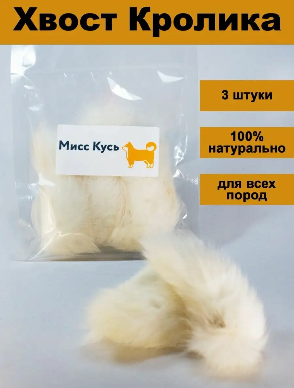 Съедобная игрушка для кошек, Мисс Кусь, Хвост кролика 3 шт. интересное: