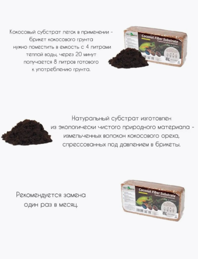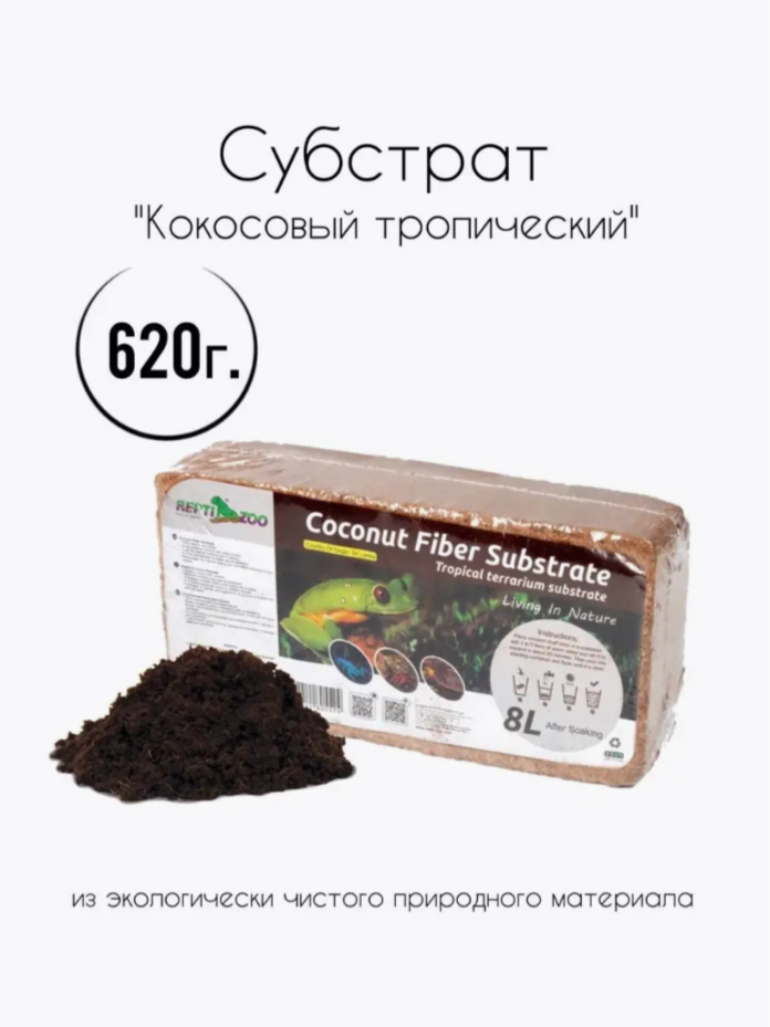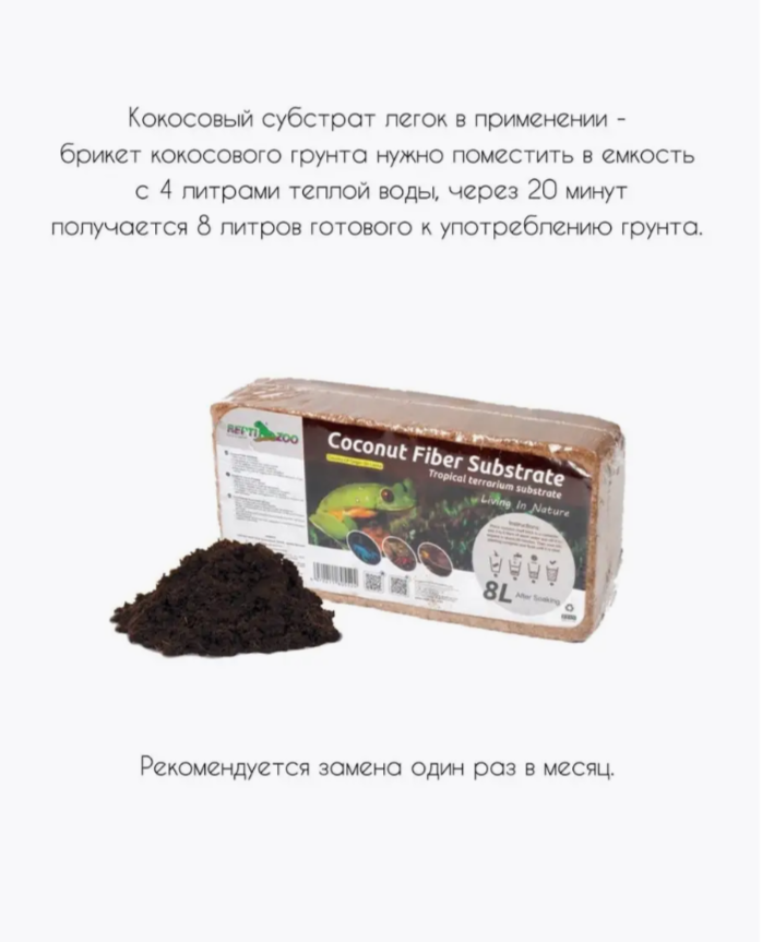 СохранитьСубстрат кокосовый тропический для террариума, 620г/8л, мелкая фракция, Repti-Zoo интересное: