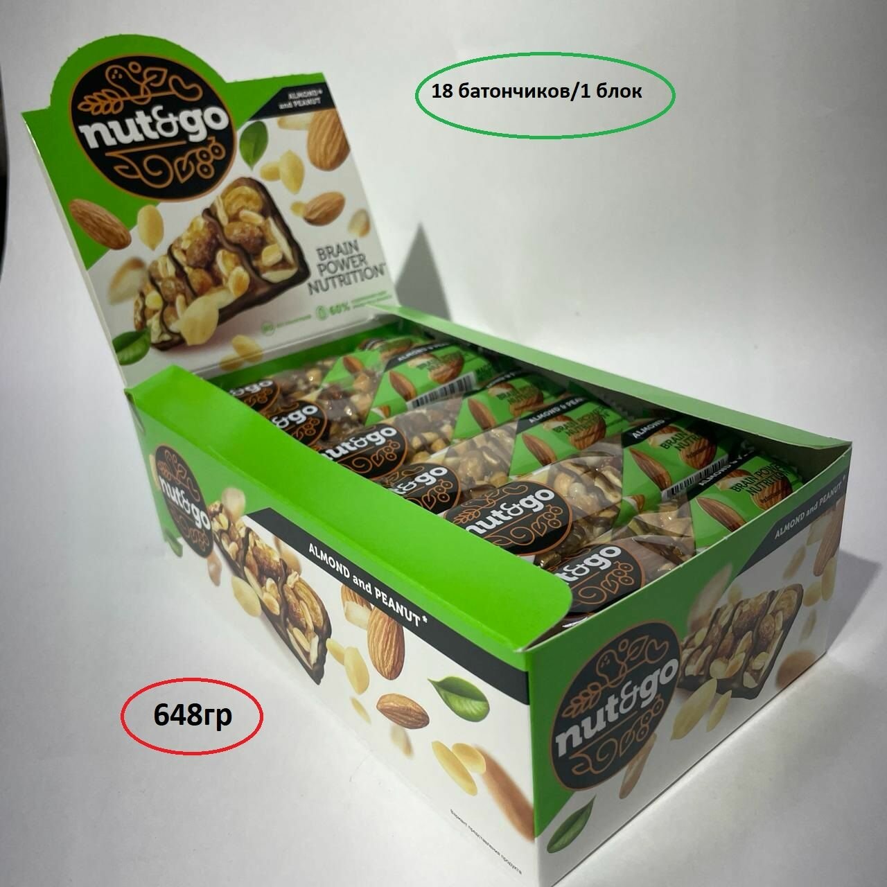 Купить Батончик Nut and Go миндаль арахис KDV, 36шт(2 блока)