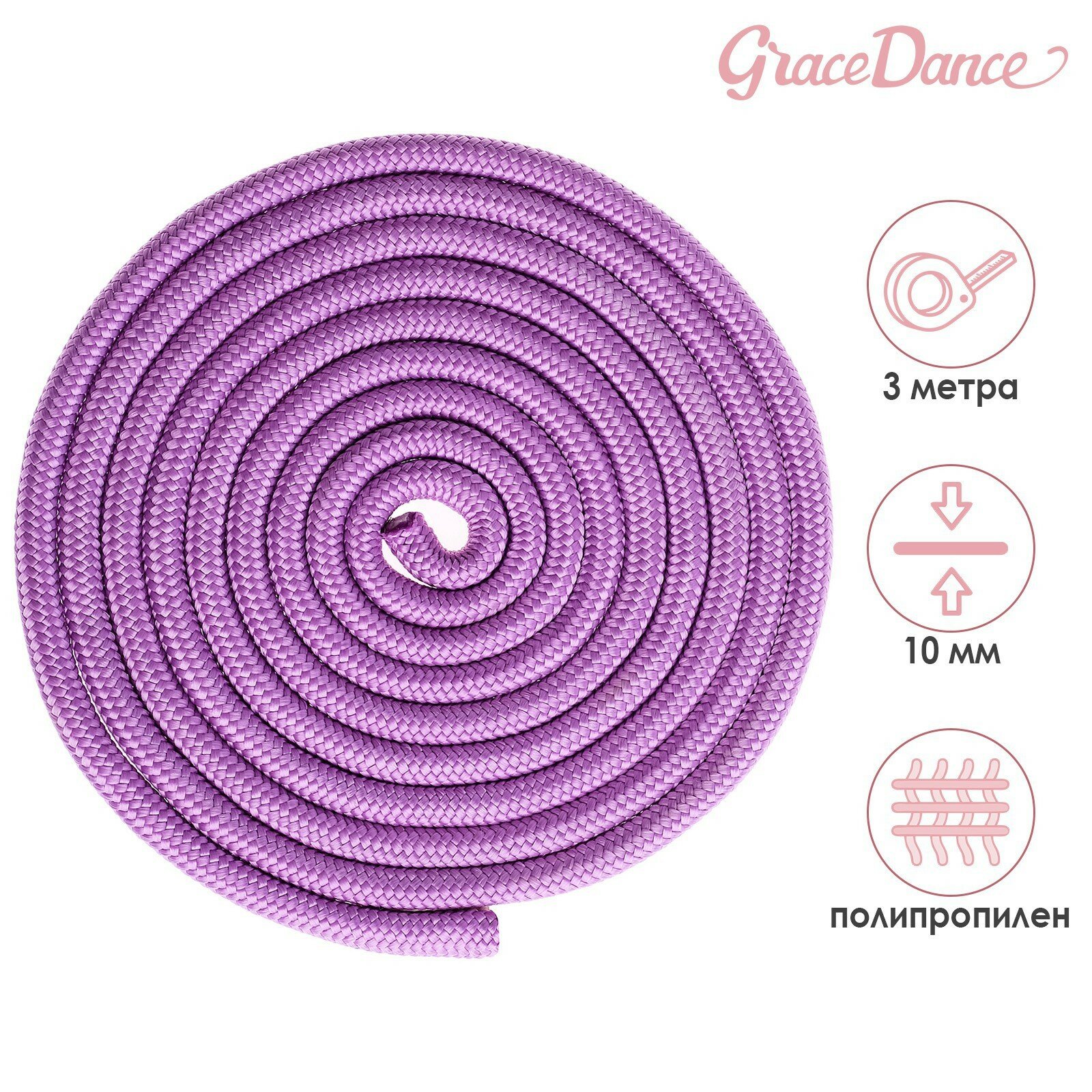 Купить Скакалка Grace Dance, гимнастическая, длина 3 м, толщина 10 мм, цвет сиреневый