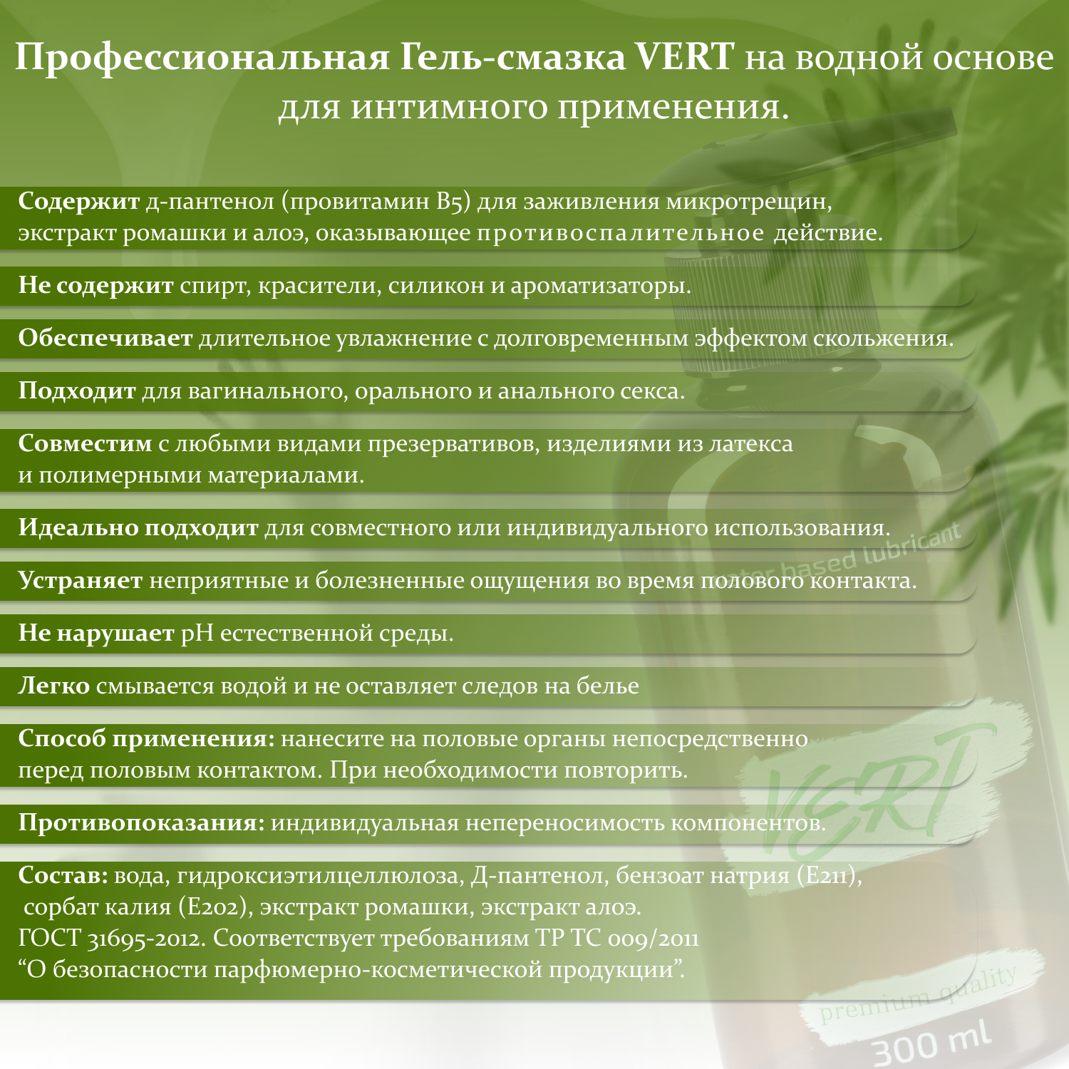 VERT 300ml - профессиональный гель-лубрикант для интимного применения на водной основе, объем 300мл