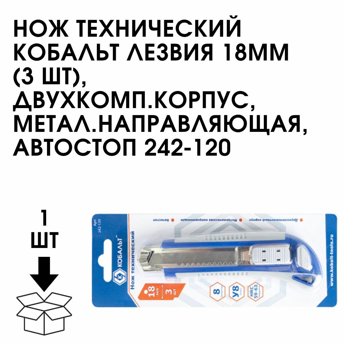 Кобальт Нож технический лезвия 18 мм, двухкомпонентный корпус,металлическая направляющая, автостоп, блисте, 242-120 интересное: