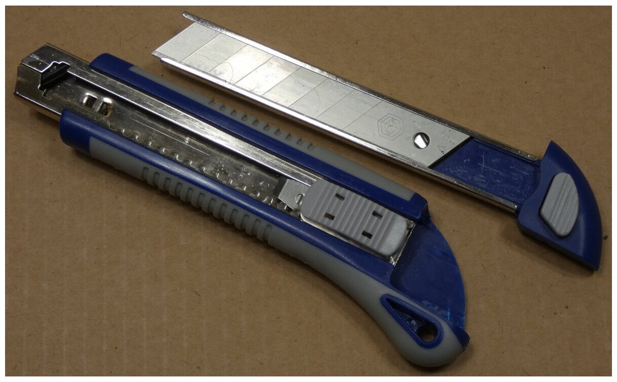 | Дополнительная информация | лезвия (8 сегментов) из углеродистой инструментальной стали У8, твердостью 59-63 HRC; автоматическая фиксация лезвия; отсек для хранения запасных лезвий |