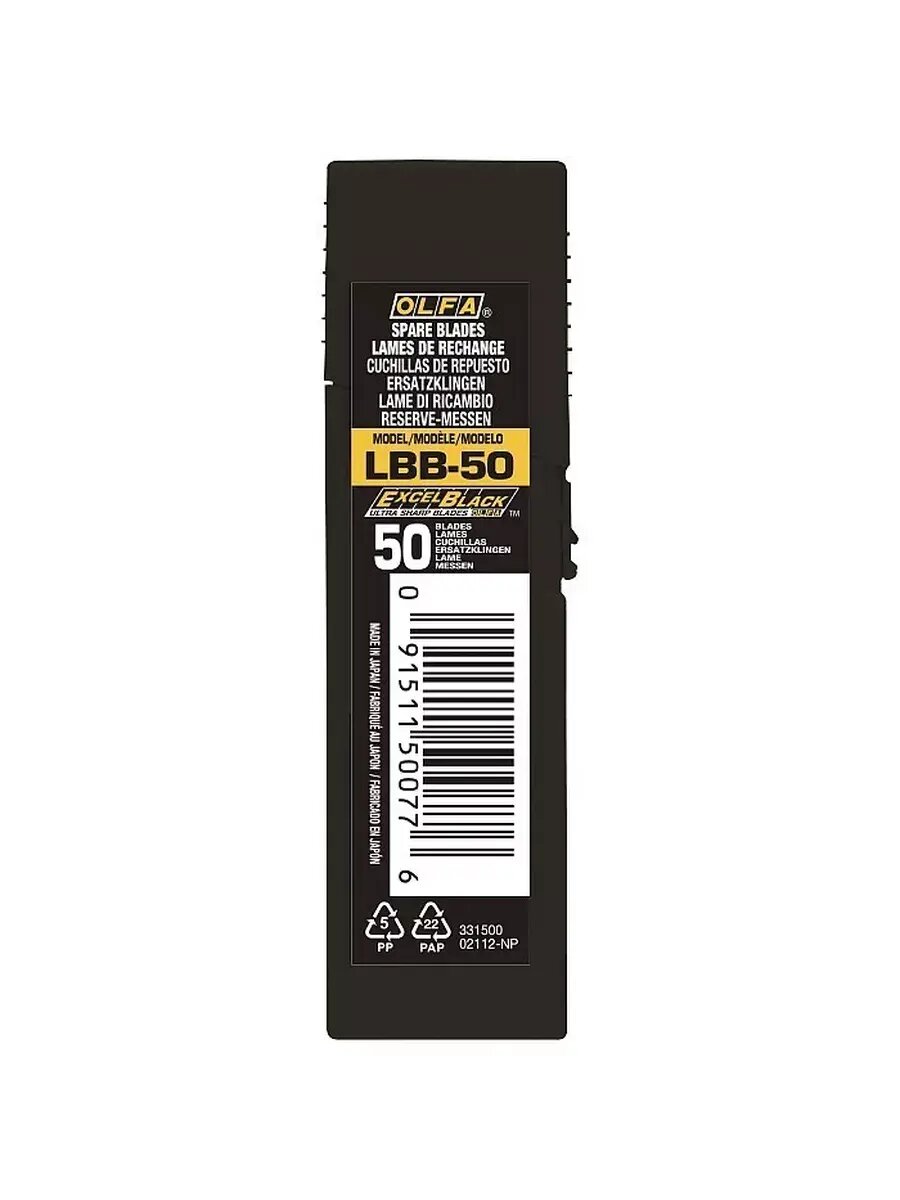 Лезвие Olfa OL-LBB-50, EXCEL BLACK сегментированное, 8 сегментов, 18 мм, 50 шт, в боксе
