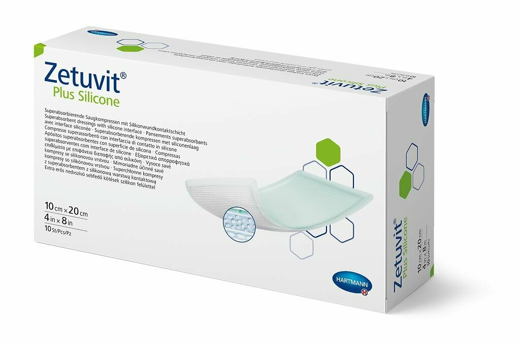 Hartmann Zetuvit Plus Silicone, повязка стерильная суперабсорбирующая (с контактн. слоем из силикона) 10 х 20 см, 10 шт.