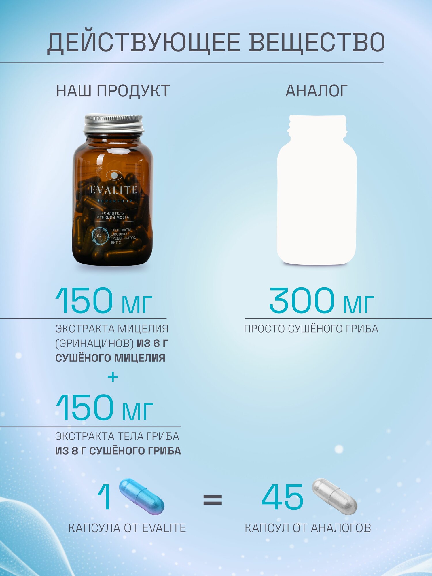 Ежовик гребенчатый PREMIUM Evalite.Superfood (64 капсулы) интересное: