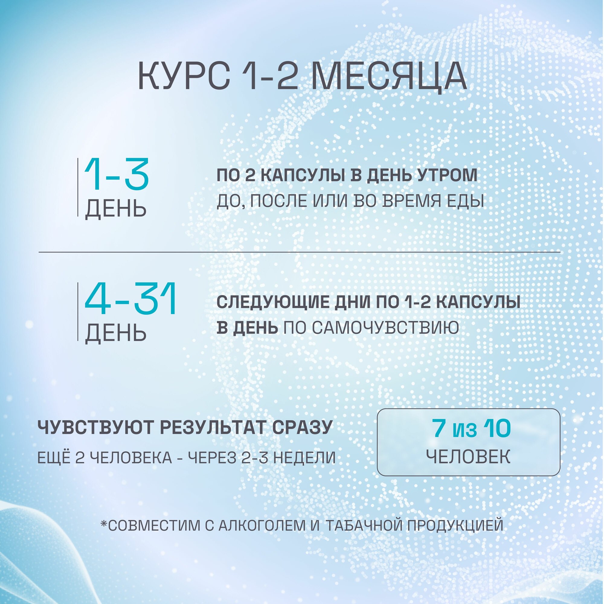 | Способ применения и дозы | Первые три дня рекомендуется употреблять по две капсулы утром. До, после или во время еды. После употреблять по самочувствию 1-2 капсулы в день. После 20 дней употребления рекомендуется сделать паузу на несколько дней. После паузы употреблять по желанию. |