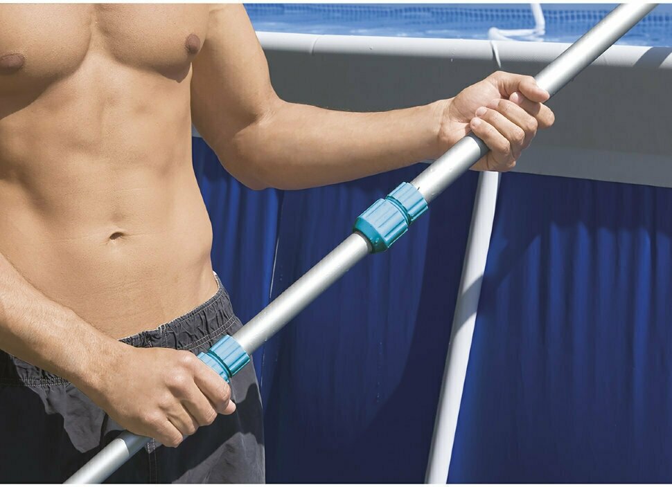 | Комплектация | телескопическая алюминиевая штанга 279 см; сачок для сбора среднего и мелкого мусора; вакуумная колба для сбора крупного мусора с двумя насадками; щетка для чистки стен и дна; шланг соединительный 38 мм х 7,5 м (длина регулируется); переходник для подключения вакуумной колбы к входному клапану насоса |