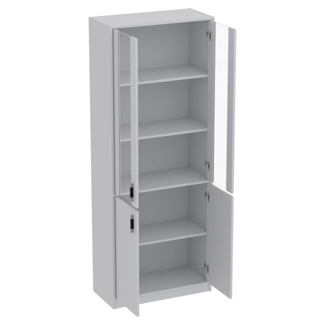 Шкаф Меб-фф Офисный шкаф ШБ-3+ДВ-62+C-28МВ прозр. цвет Серый 77/37/200 см