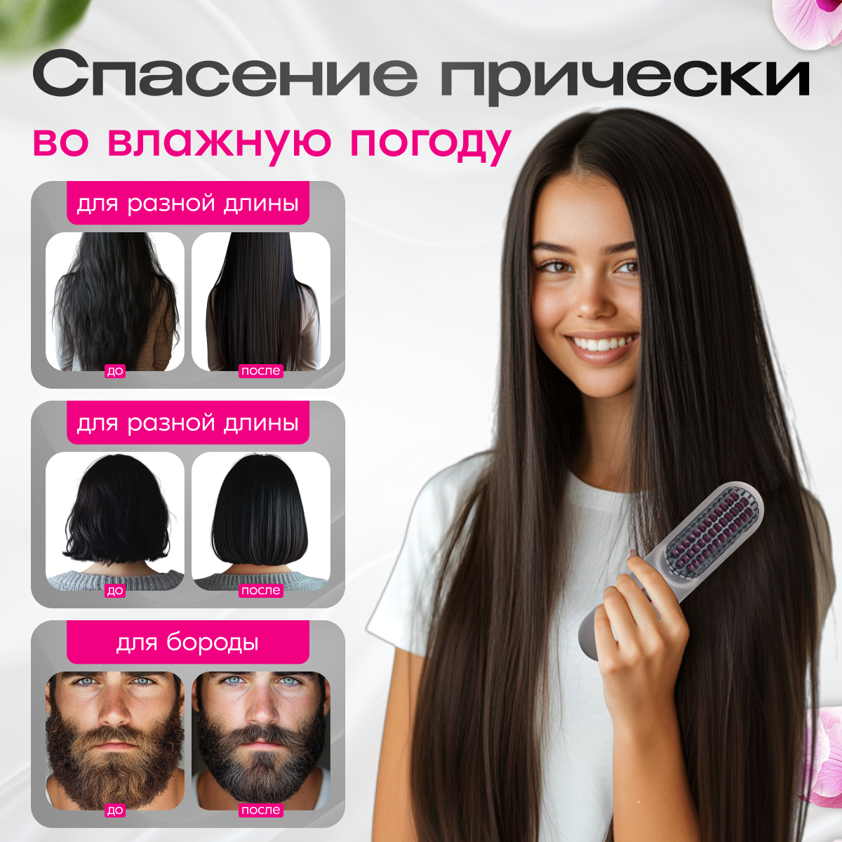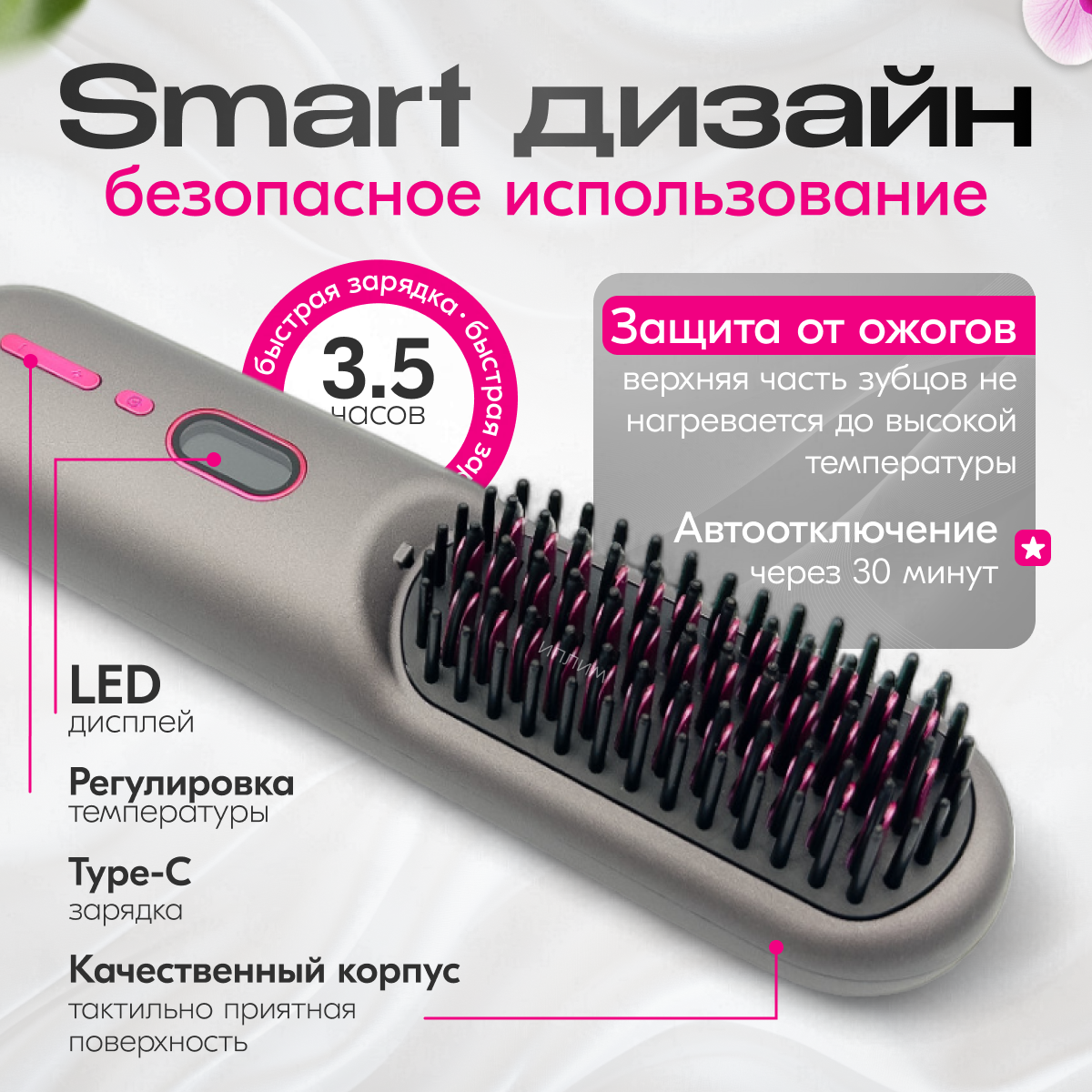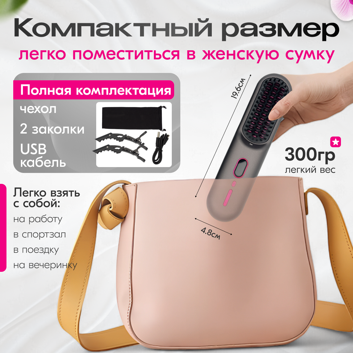 Выпрямитель для волос, беспроводная расческа для волос с ионизацией