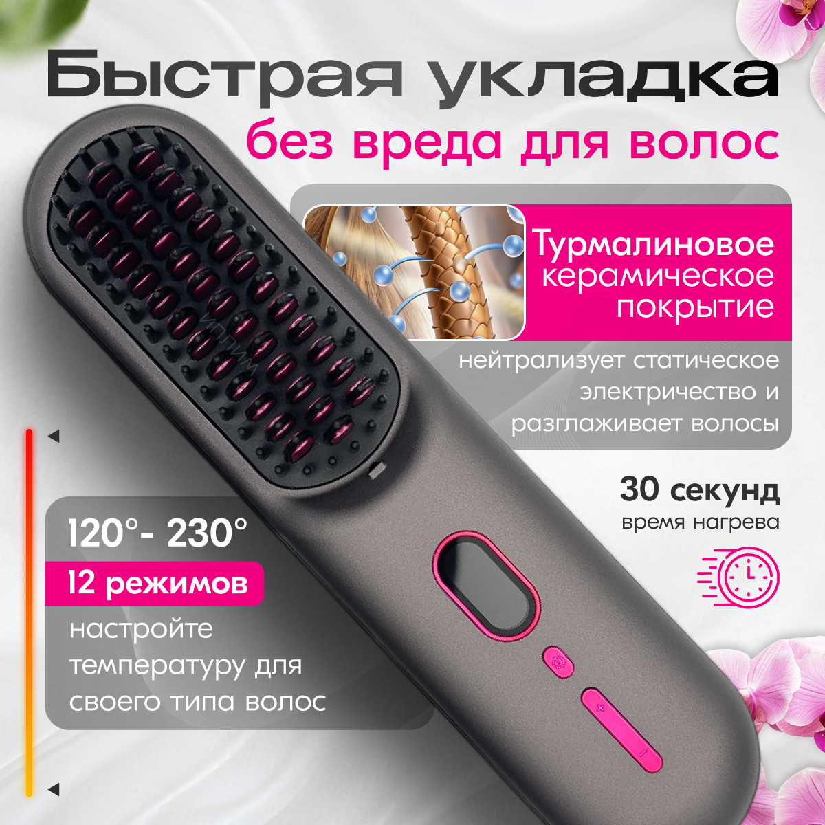 Купить Расческа выпрямитель беспроводная для волос, стайлер для волос, ионизация, 12 режимов нагрева, утюжок для волос