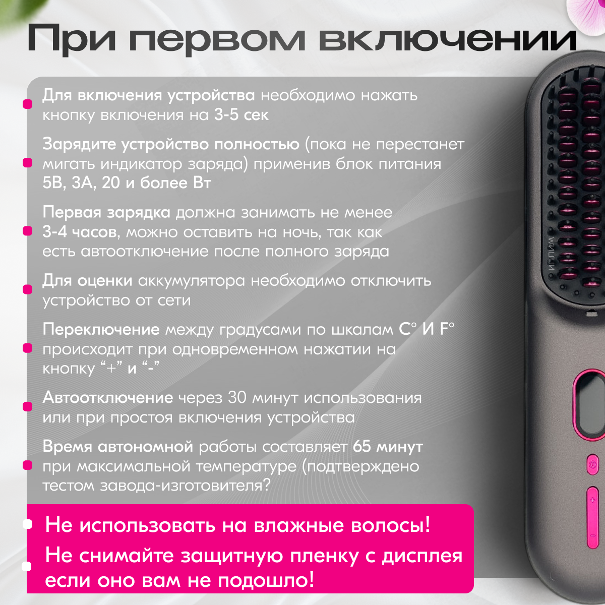 Расческа выпрямитель беспроводная для волос, стайлер для волос, ионизация, 12 режимов нагрева, утюжок для волос интересное: