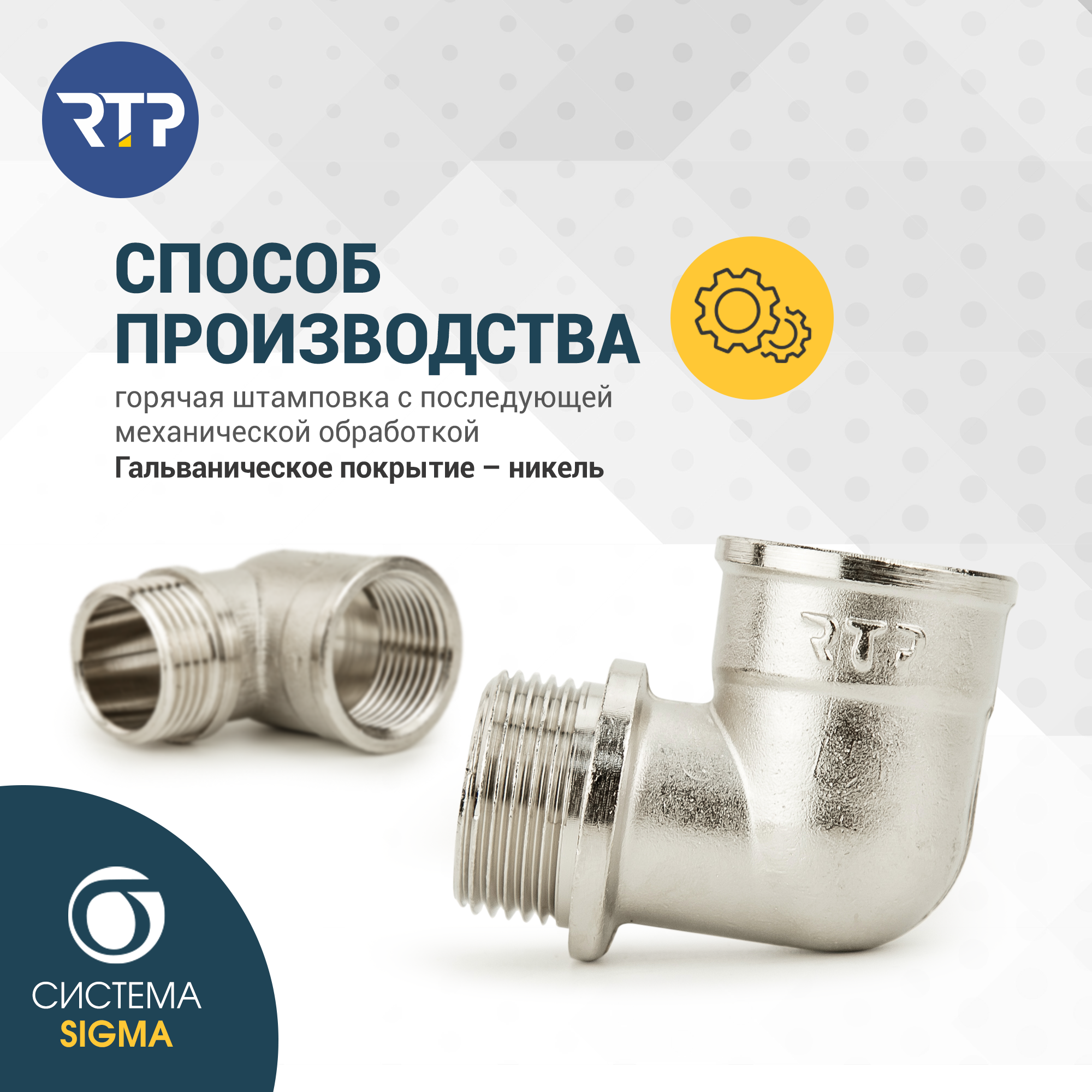 Угольник 90° резьба, латунный никелированный RTP, ВР/НР, 1/2"