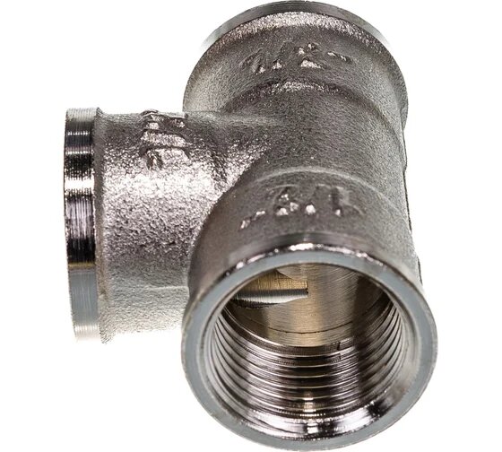 Тройник латунь внутр./внутр./внутр. резьба 1/2дюйм никель (инд. упак.), RTP 34919 (1 шт.)