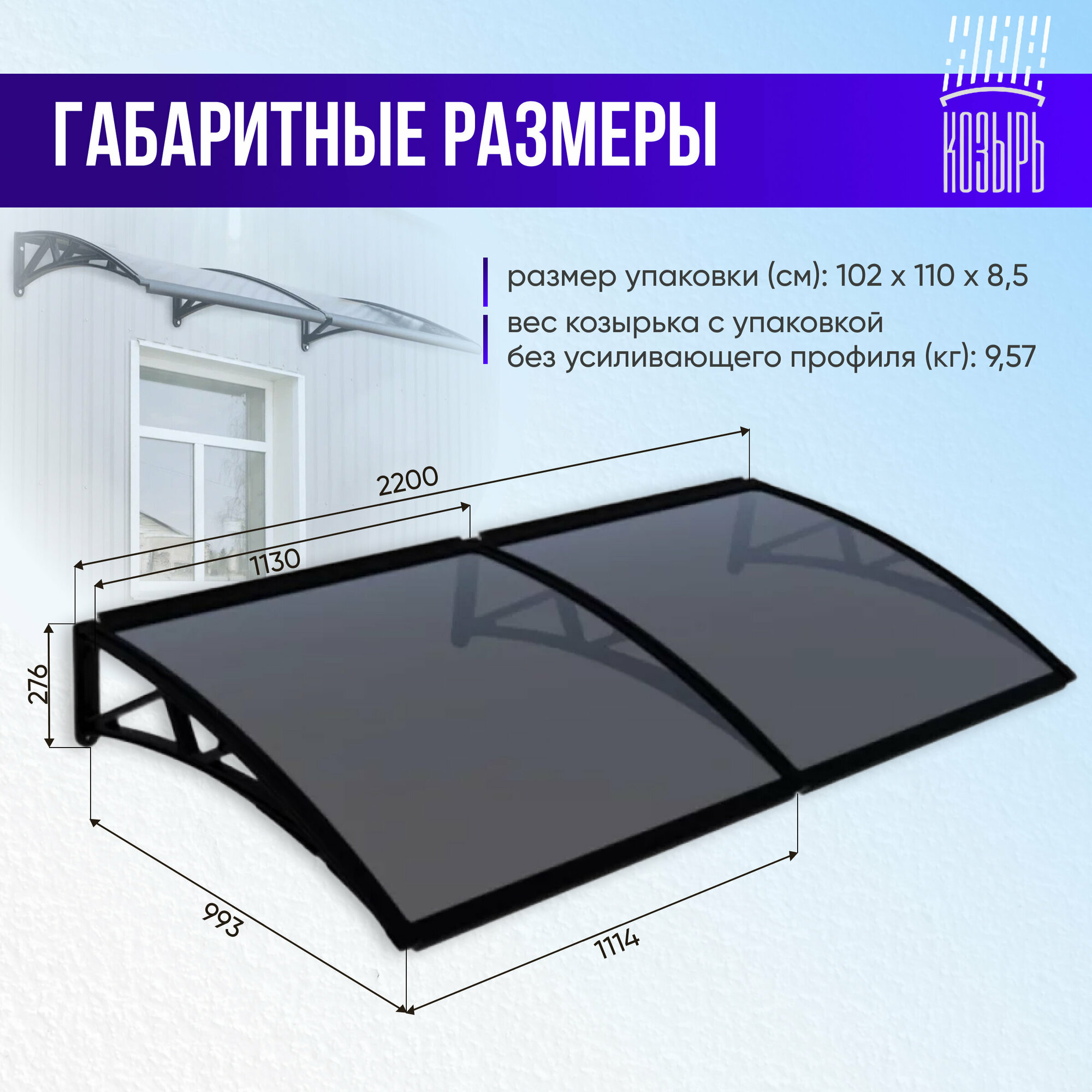 Защитный универсальный козырек, двойной, серый, ПК сотовый темный 6 мм интересное: