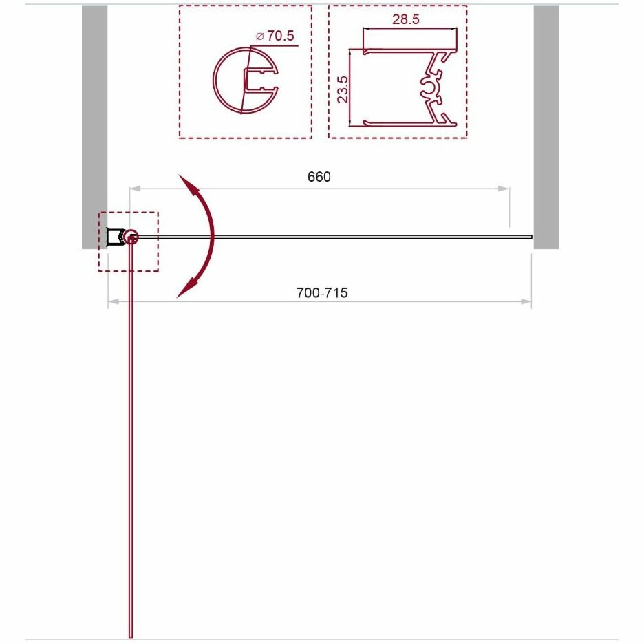 | Дополнительная информация | материал полотна двери: закаленное стекло, стандарт EN12150-1:2000; материал профиля: анодированный алюминий, стандарт DIN17611 2007; |