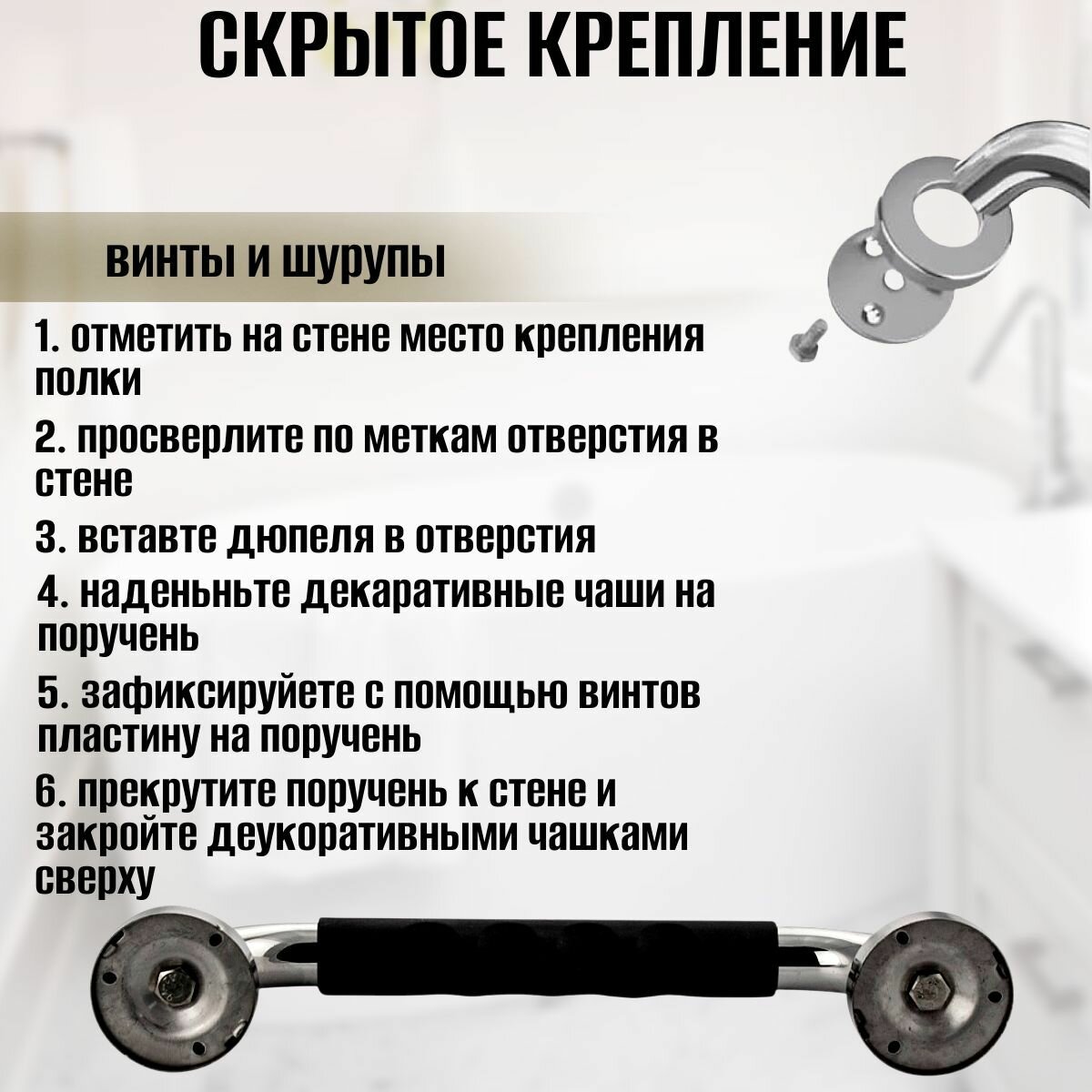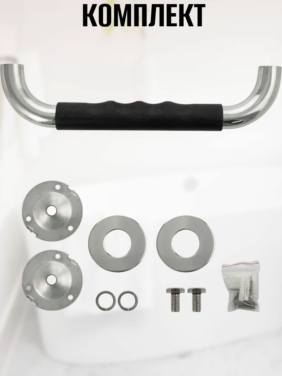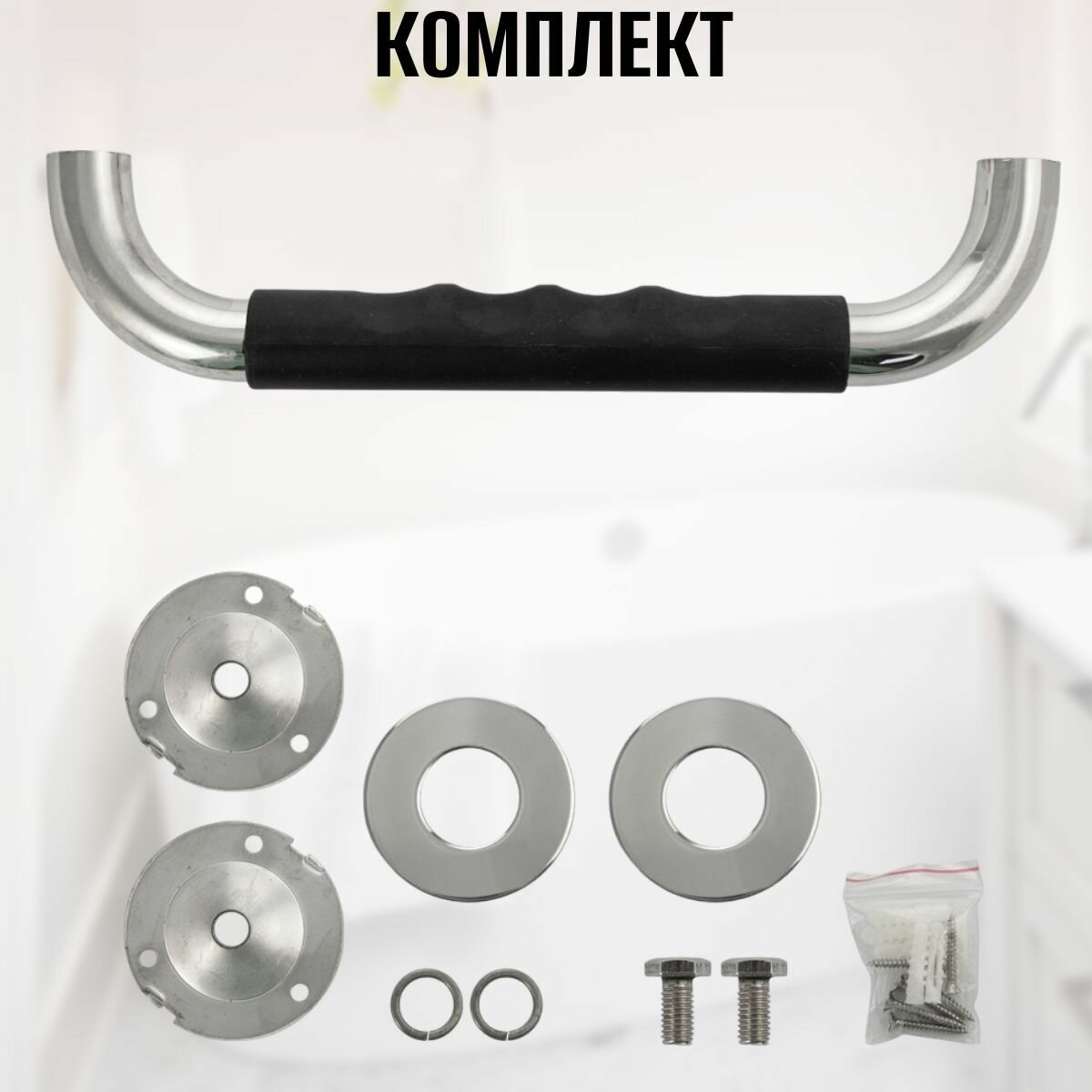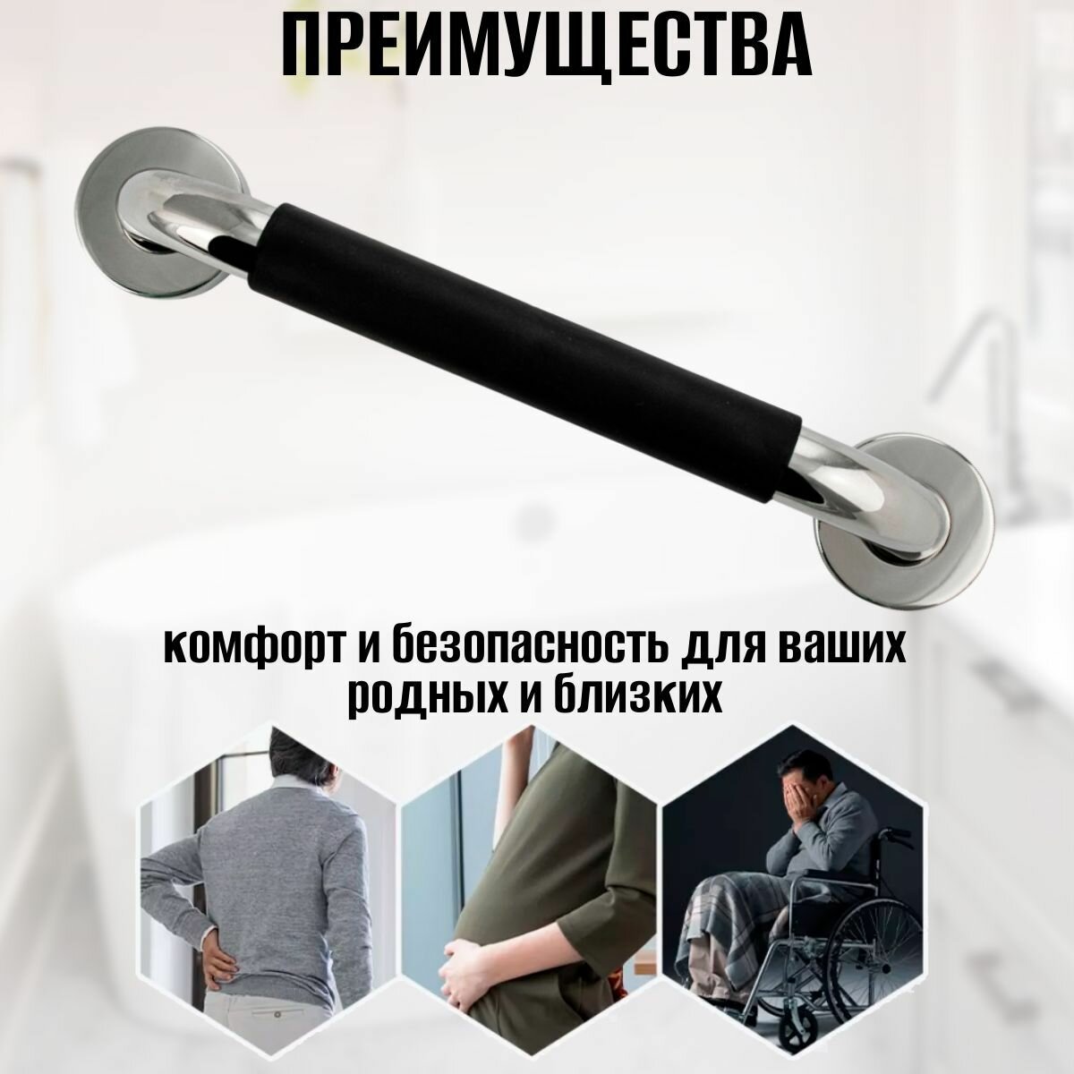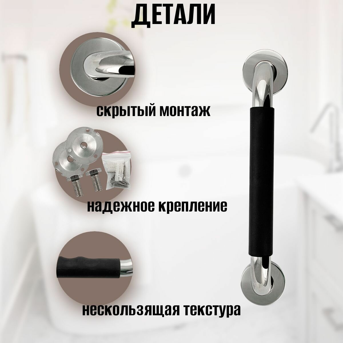 Поручень для ванной, из нержавеющей стали, прямой, с черной пластиковой накладкой, цвет хром. интересное: