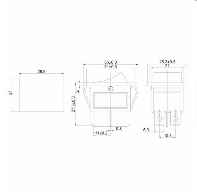Выключатель клавишный 250В, 16А, (4с), ON-OFF, черный (комплект с клеммами и термоусадкой)