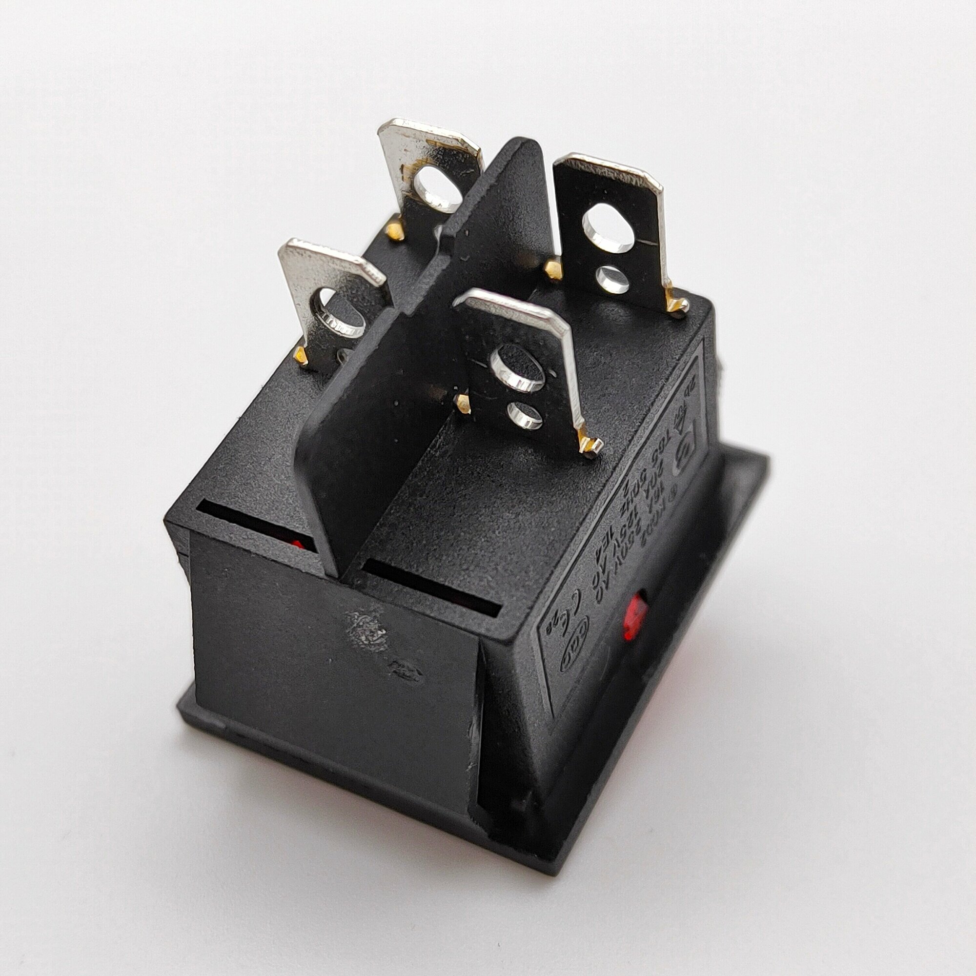 Выключатель клавишный 250В, подсветка, 16А, (4с), ON-OFF, красный (комплект с клеммами и термоусадкой)