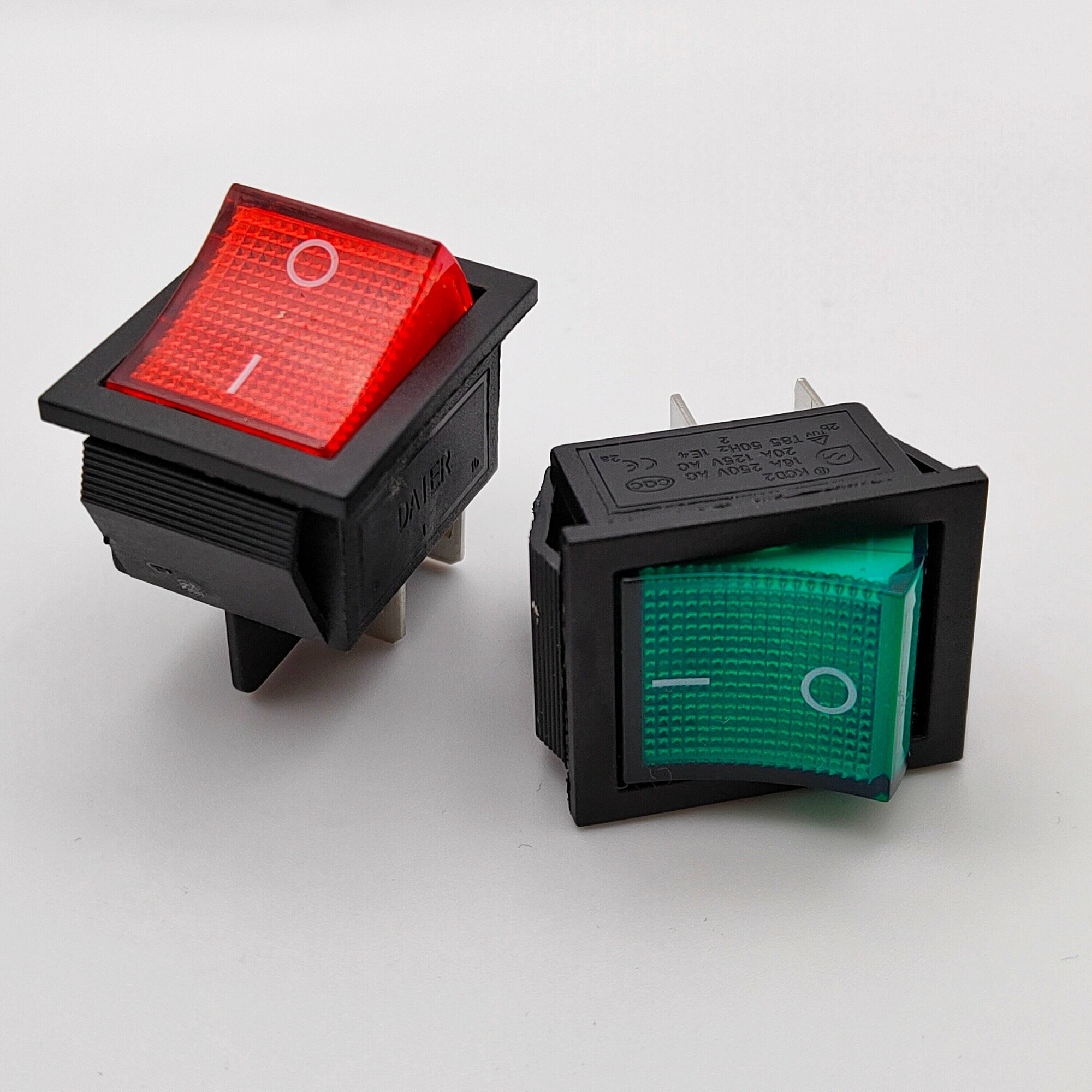 Выключатель клавишный 250В, подсветка, 16А, (4с), ON-OFF, зеленый (комплект с клеммами и термоусадкой)