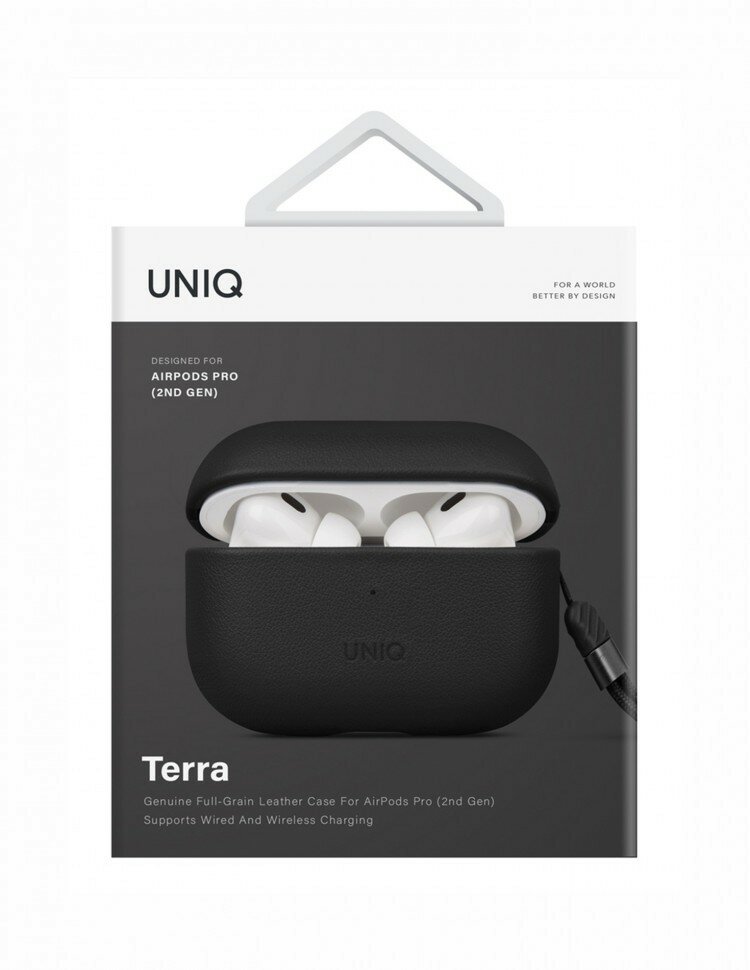 Купить Uniq для Airpods Pro 2 чехол Terra Genuine Leather with handstrap Black