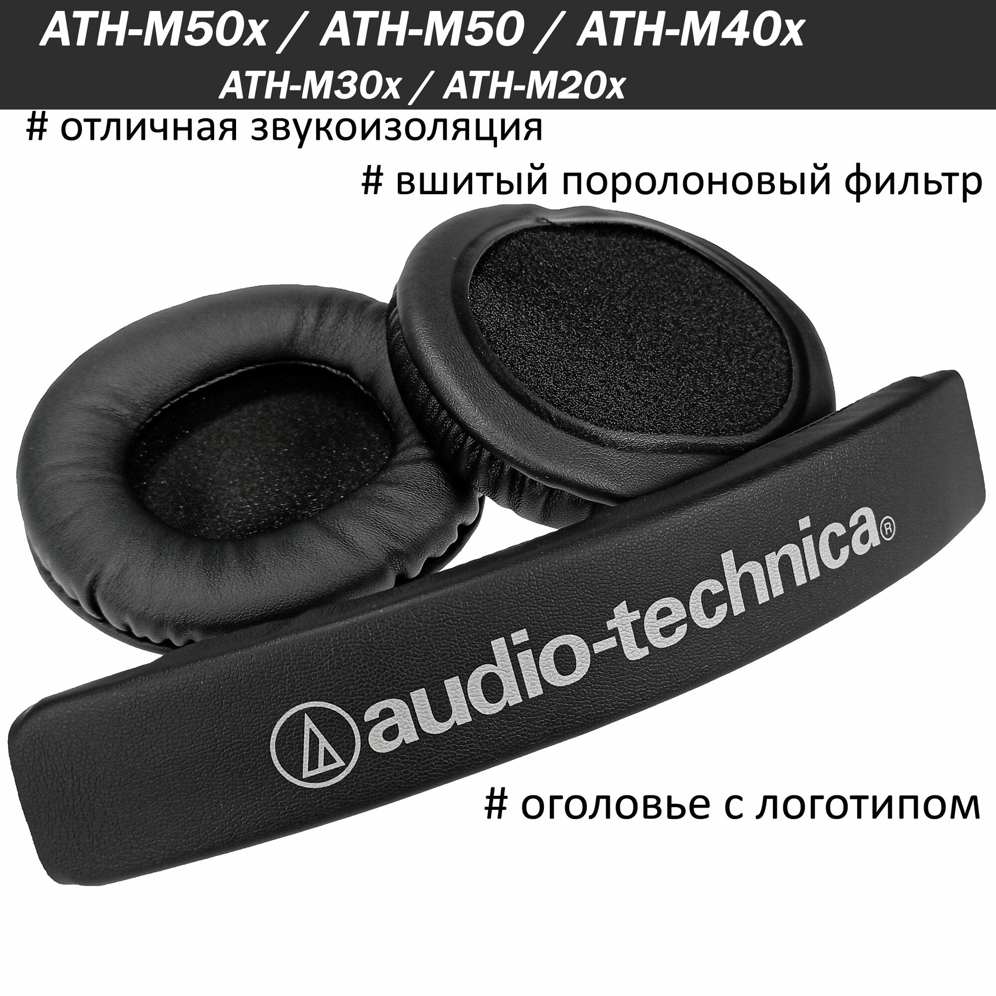 Амбушюры + оголовье Audio-Technica ATH-M50 / M50x, ATH-M50xBT / M50xBT2, ATH-M40x, ATH-M30x / M20x с вшитым поролоном интересное: