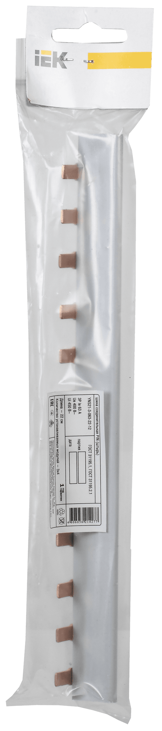 Шина соединительная PIN 3п 63А 12 мод. (дл.22см) IEK YNS21-3-063-22-12