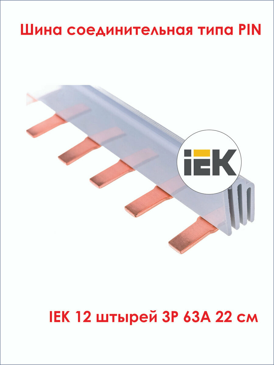 Шина соединительная PIN 3п 63А 12 модулей, длина 22см, IEK YNS21-3-063-22-12 (10 шт.)