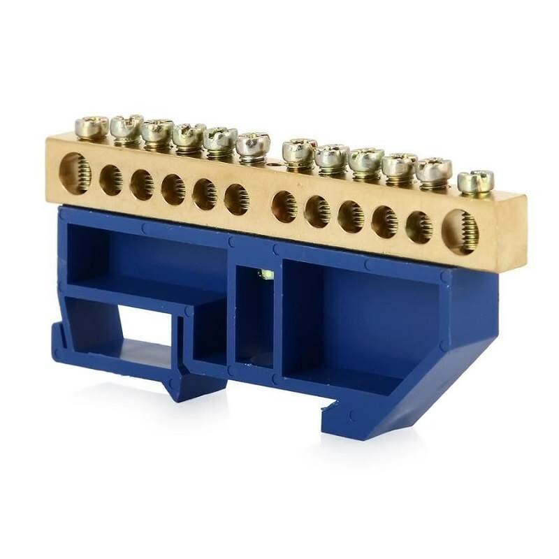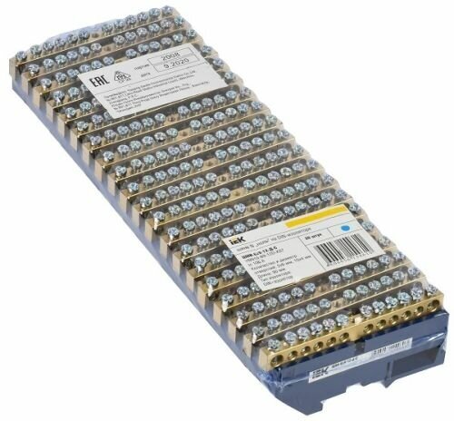 Шина IEK / ИЭК ШНИ-6х9-8-Д-С нулевая синий изолятор, контактная группа качественная латунь, 64х42х88.5мм, DIN-рейка, 1×8 100А, YNN10-69-8D-K07 / соединитель проводов (комплект из 6 шт)