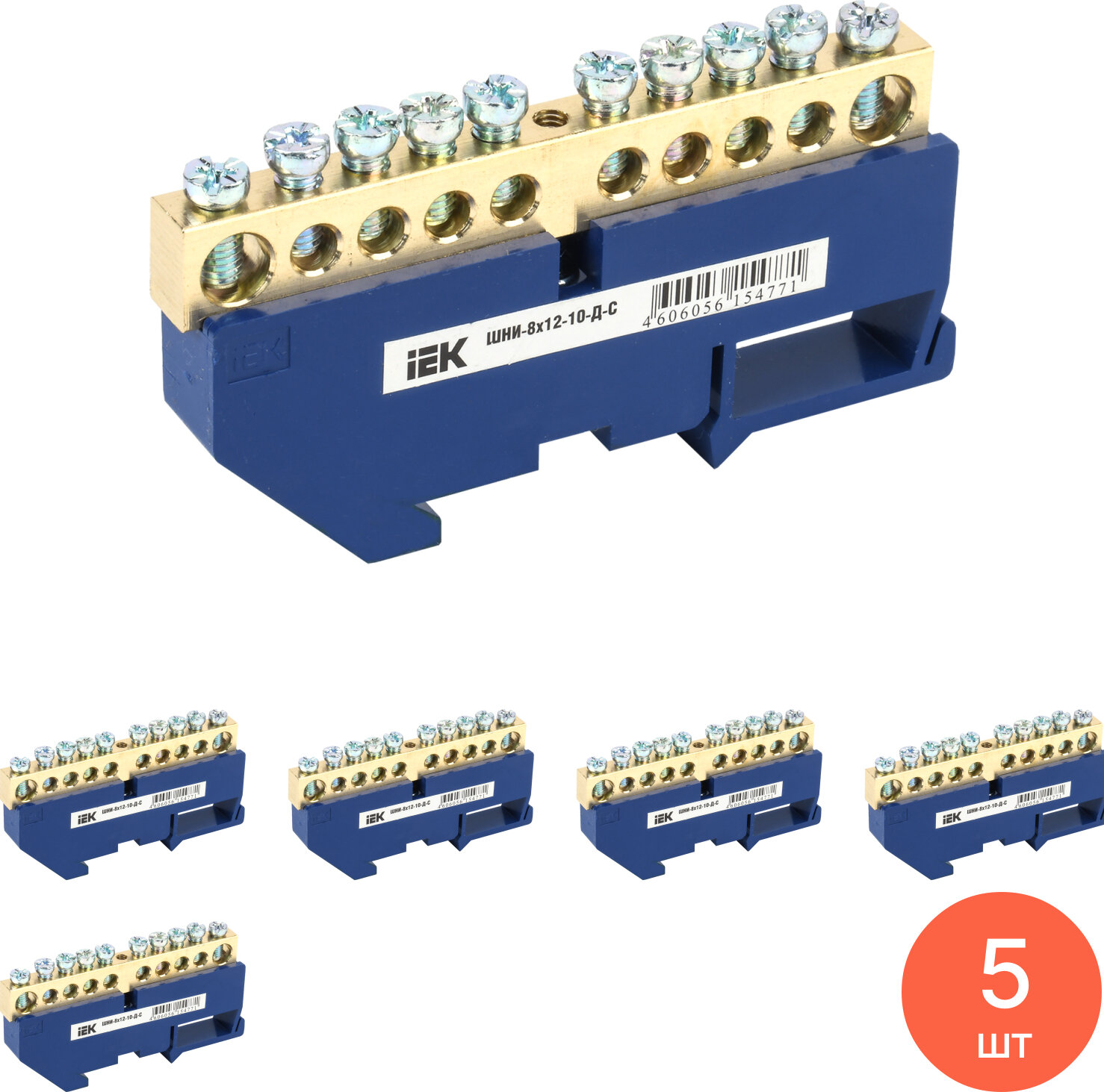 Шина нулевая на DIN-изол. ШНИ-8х12-10-Д-С IEK YNN10-812-10D-K07 (5шт. в упак.)