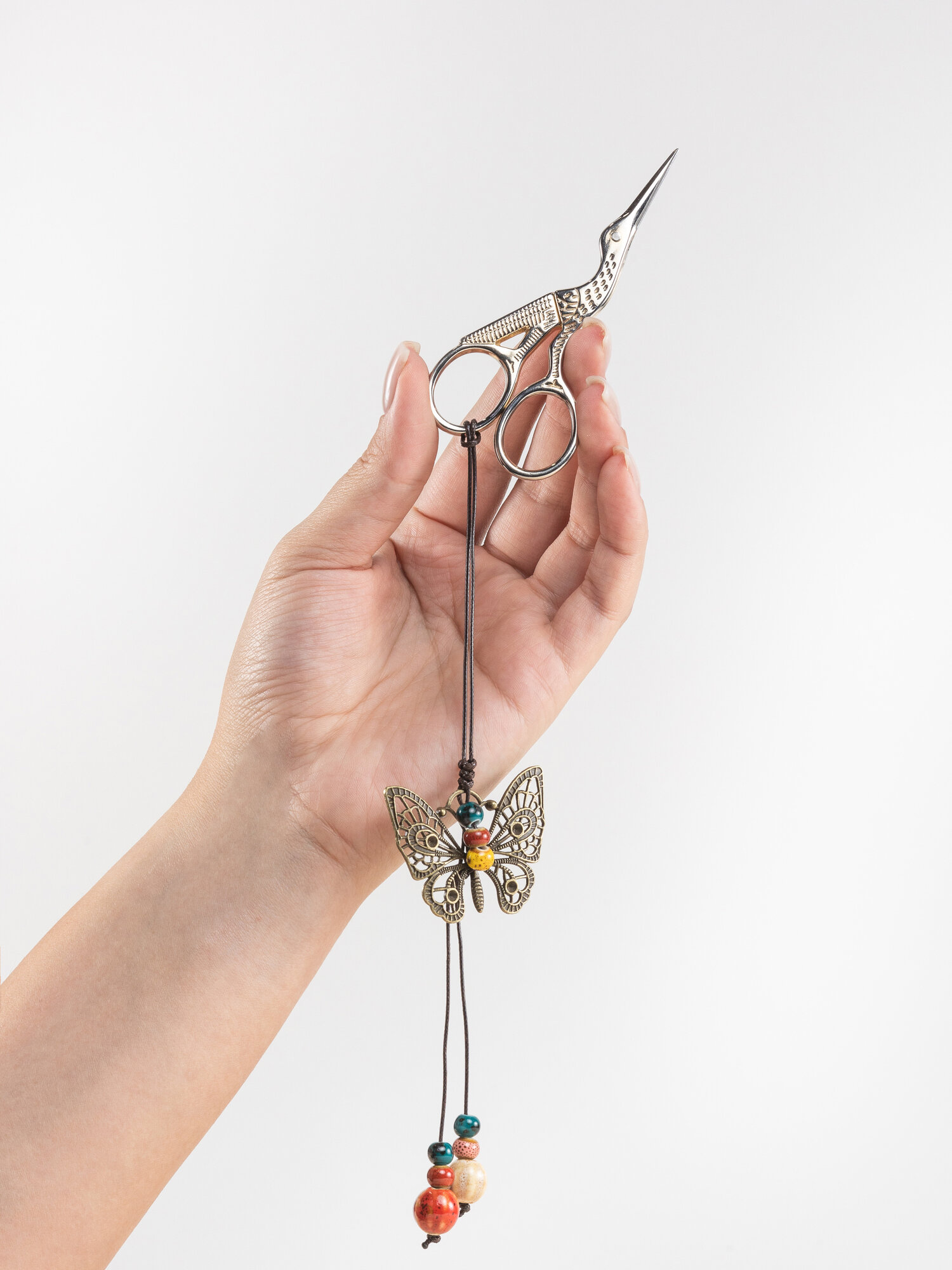 Маячок для ножниц, брелок бабочка с бусинами, цвет бронза, COLOR Si