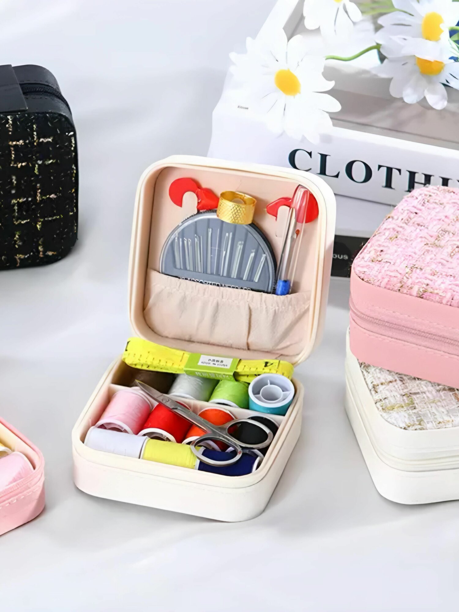 Купить Швейный набор шкатулка на молнии (белый)