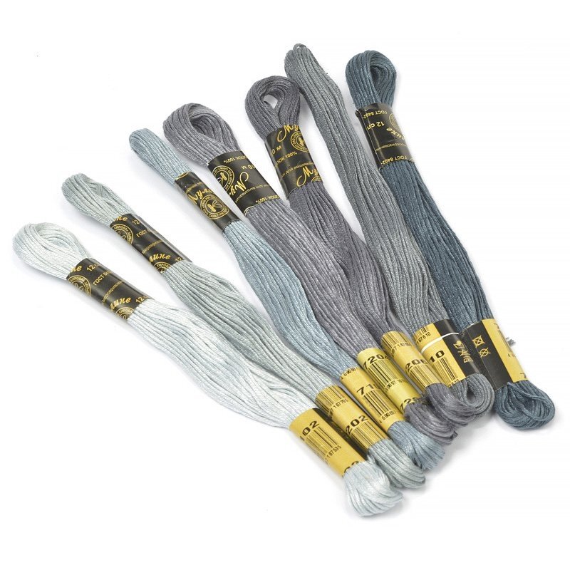 Набор мулине "ПНК им. Кирова" "Цветик-Семицветик" 100% хлопок 7 цв. x 10 м Набор №8 серая гамма