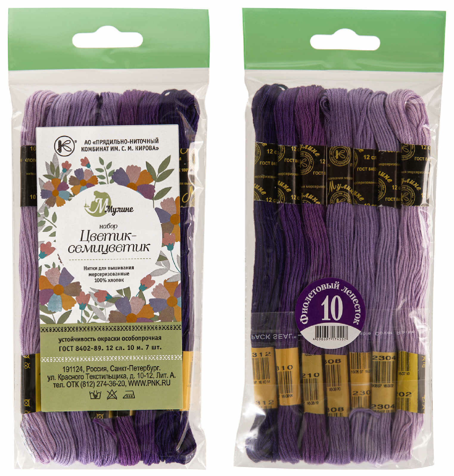 Набор мулине "ПНК им. Кирова" "Цветик-Семицветик" 100% хлопок 7 цв. x 10 м Набор №10 фиолетовая гамма
