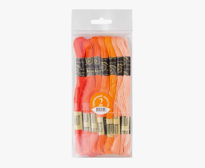 Набор мулине "ПНК им. Кирова" "Цветик-Семицветик" 100% хлопок 7 цв. x 10 м Набор №2 оранжевая гамма