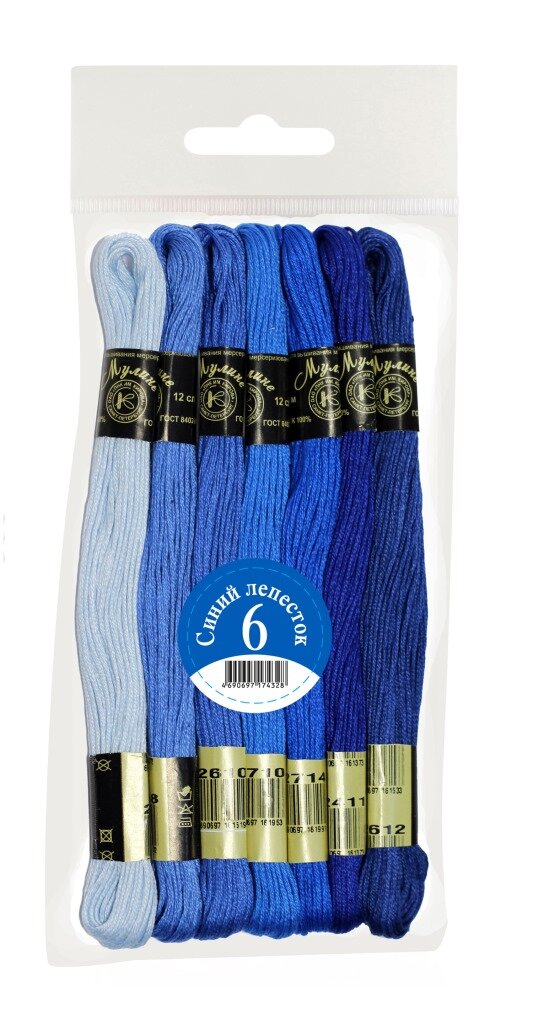 Купить Набор ниток мулине "Цветик-семицветик", хлопчатобумажные, цвет: синий лепесток №6, 10 м, 7 шт