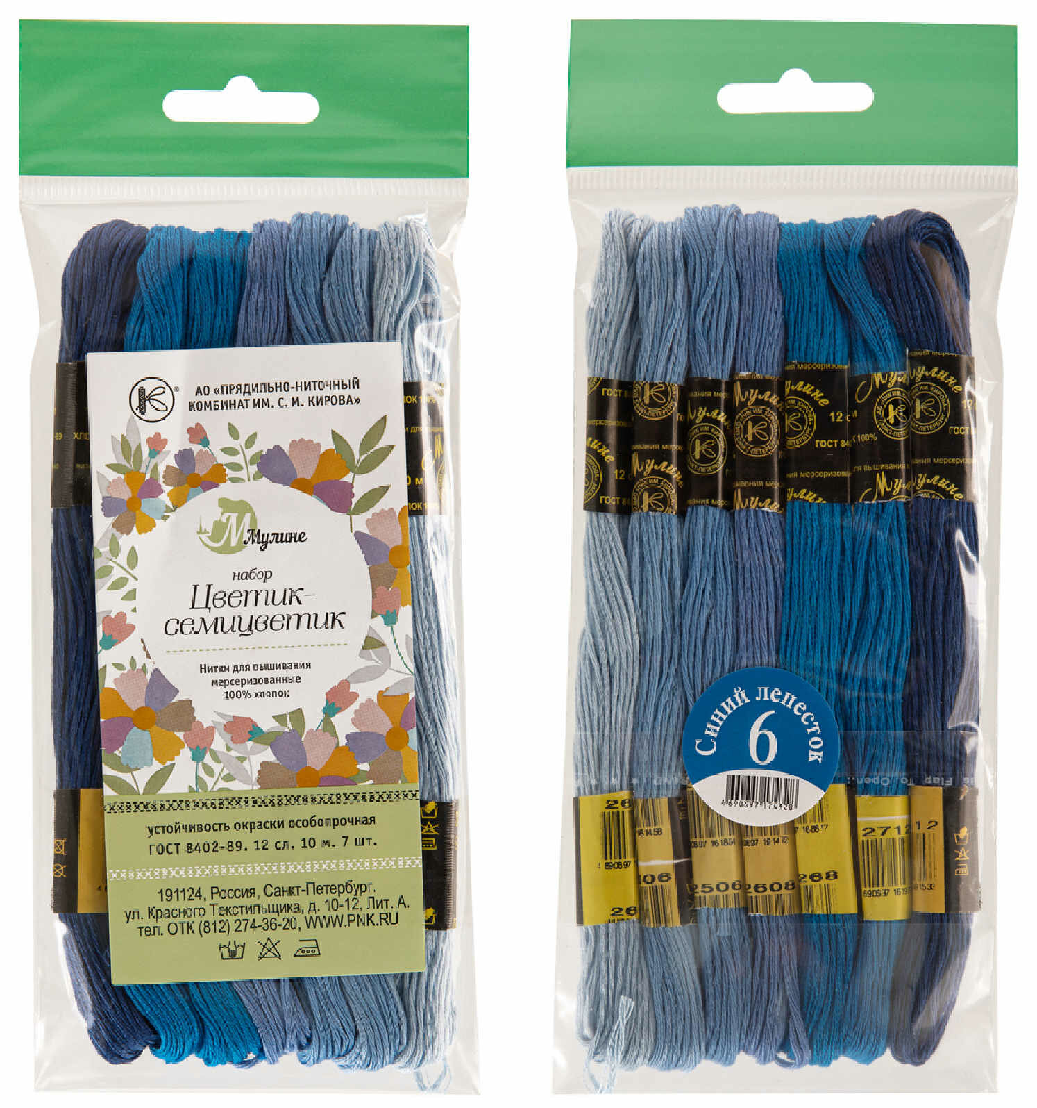 СохранитьНабор ниток мулине "Цветик-семицветик", хлопчатобумажные, цвет: синий лепесток №6, 10 м, 7 шт интересное: